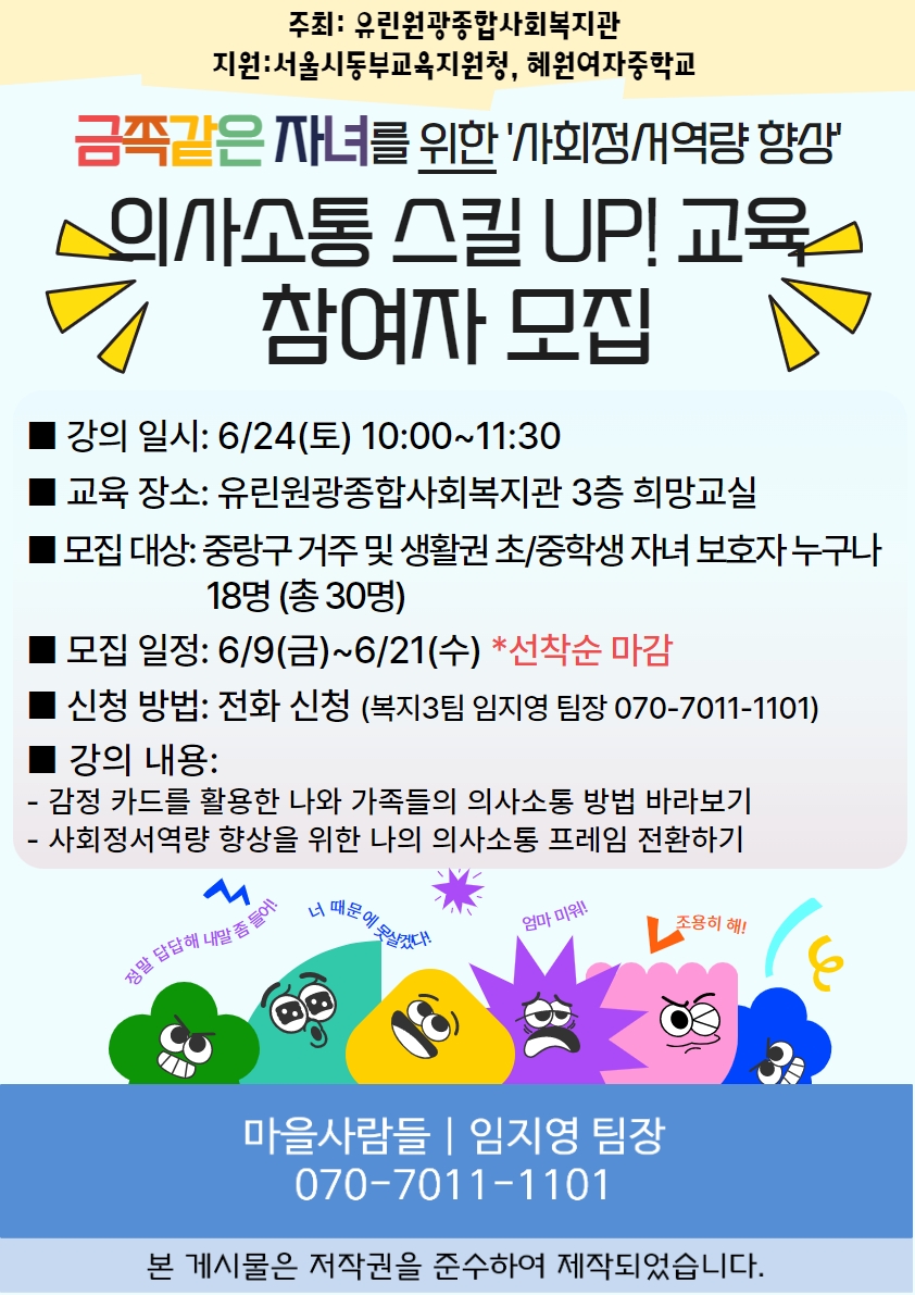 금쪽같은 자녀를 위한 사회정서역량 향상! 의사소통 스킬 up! 교육에 보호자님을 초대합니다.
