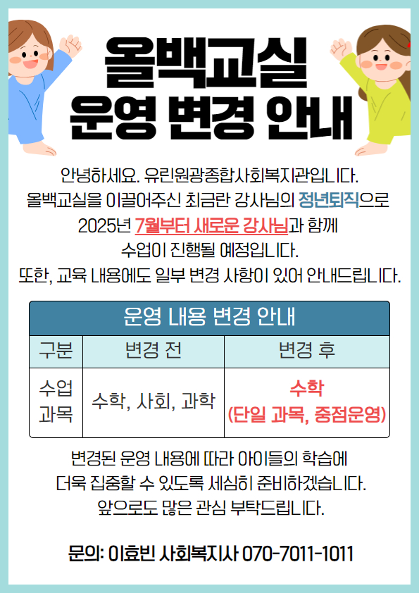 올백교실 운영변경 안내