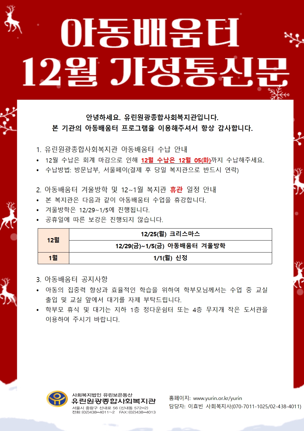 유린원광종합사회복지관 2023년 4차 추가경정예산 및 2024년 본예산 공고