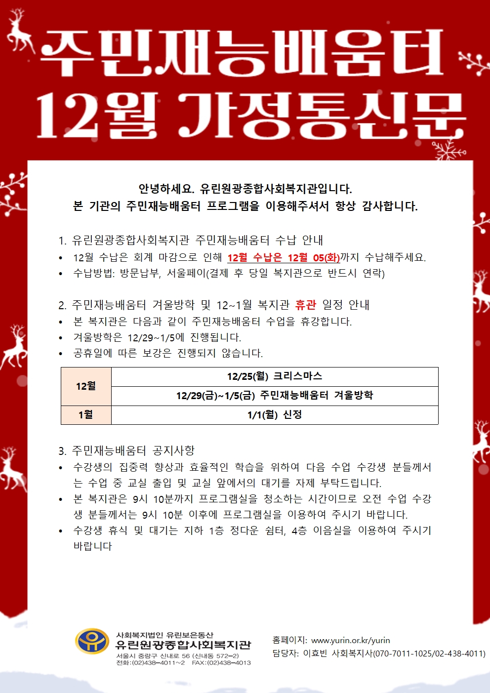 유린원광종합사회복지관 2023년 4차 추가경정예산 및 2024년 본예산 공고