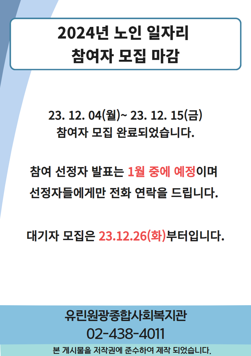 2024년 어르신배움터 상반기 추첨 결과 및 개강 계획