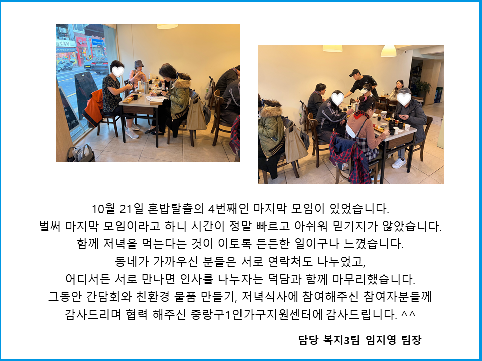 중랑구1인가구지원센터 연계 혼밥탈출 4기 마지막 모임