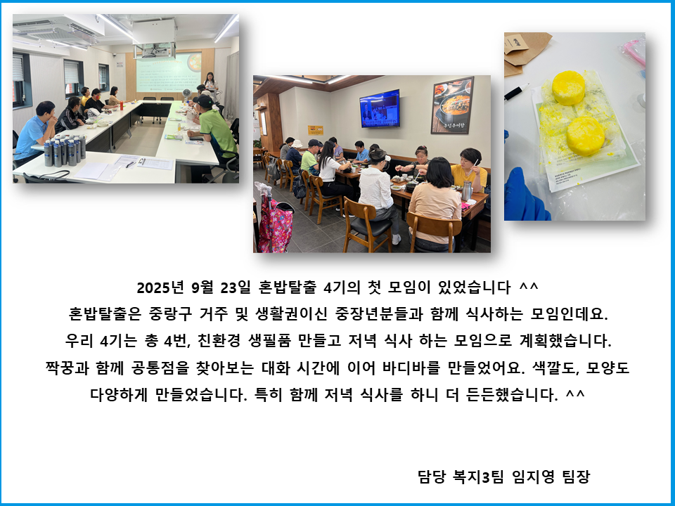 중랑구1인가구지원센터 연계 혼밥탈출 4기 첫 모임
