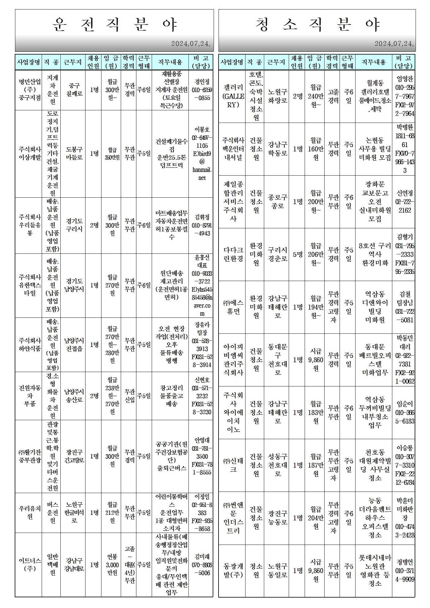 [중랑구청] 7월 넷째 주 일자리 정보
