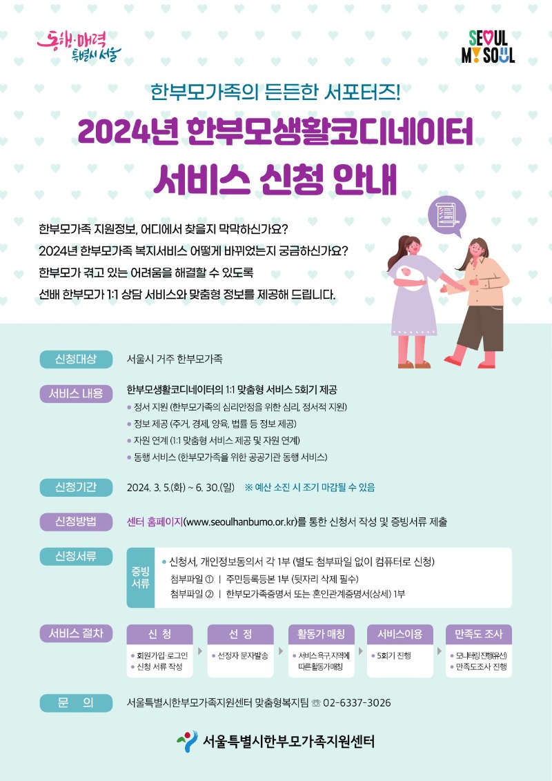 [서울특별시한부모가족지원센터] 2024년 한부모생활코디네이터 서비스 신청 안내