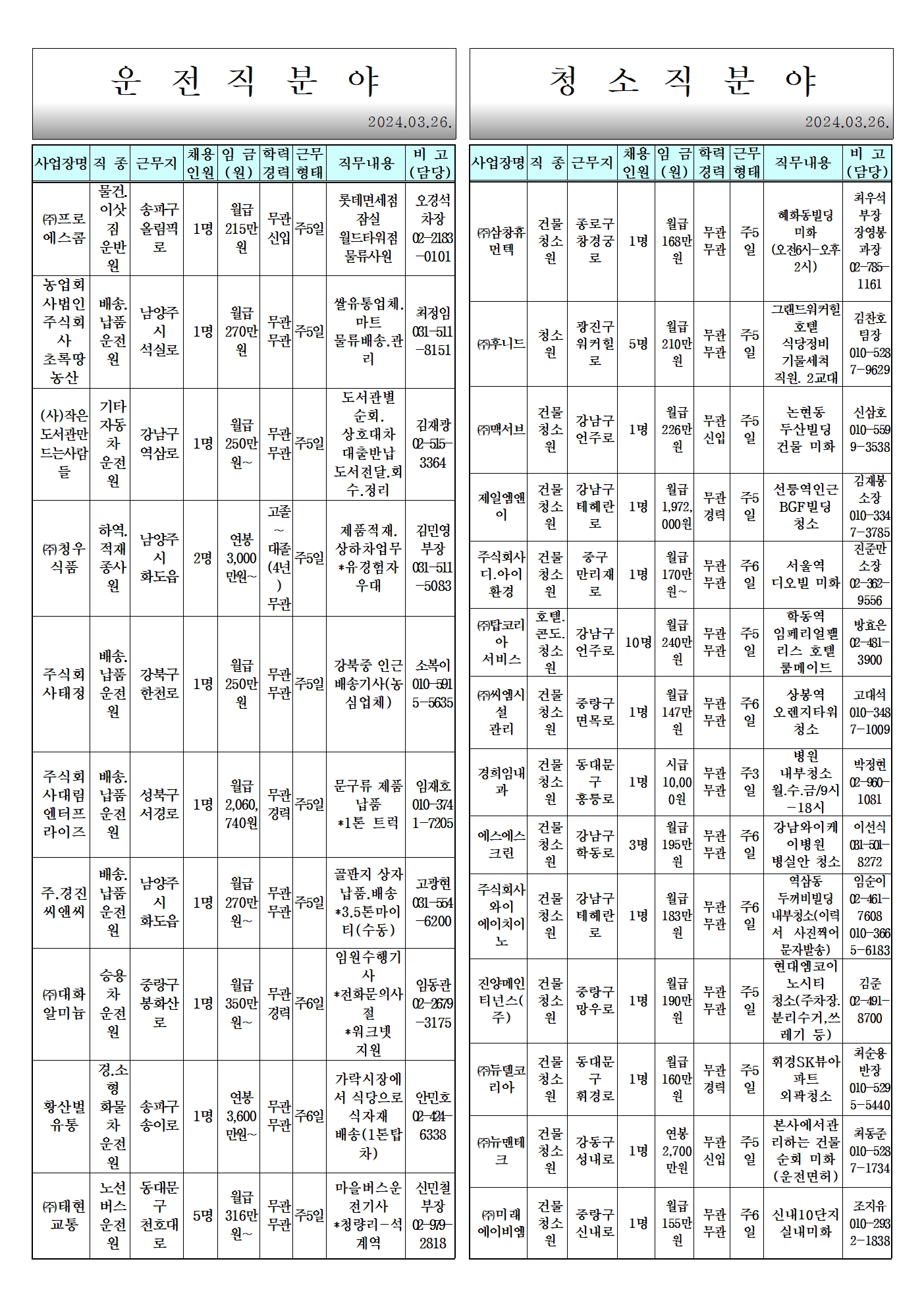 [중랑구청] 3월 넷째 주 일자리 정보