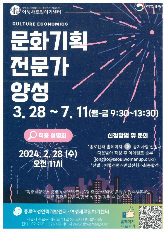 [여성새로일하기센터] 문화기획 전문가 양성, 미디어 영…