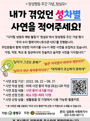 양성평등 주간 기념 행사 '내가 겪었던 성차별 이야기'…