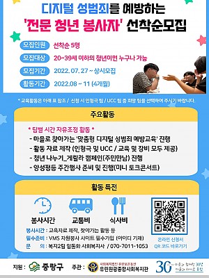 디지털 성범죄를 예방하는 '전문 청년 봉사자' 선착순 …