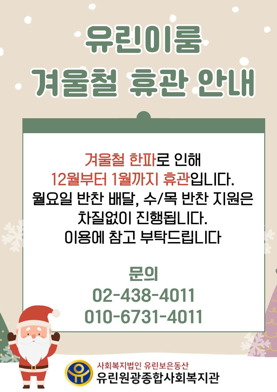 면목2동 거점공간 유린이룸 겨울철 휴관 안내