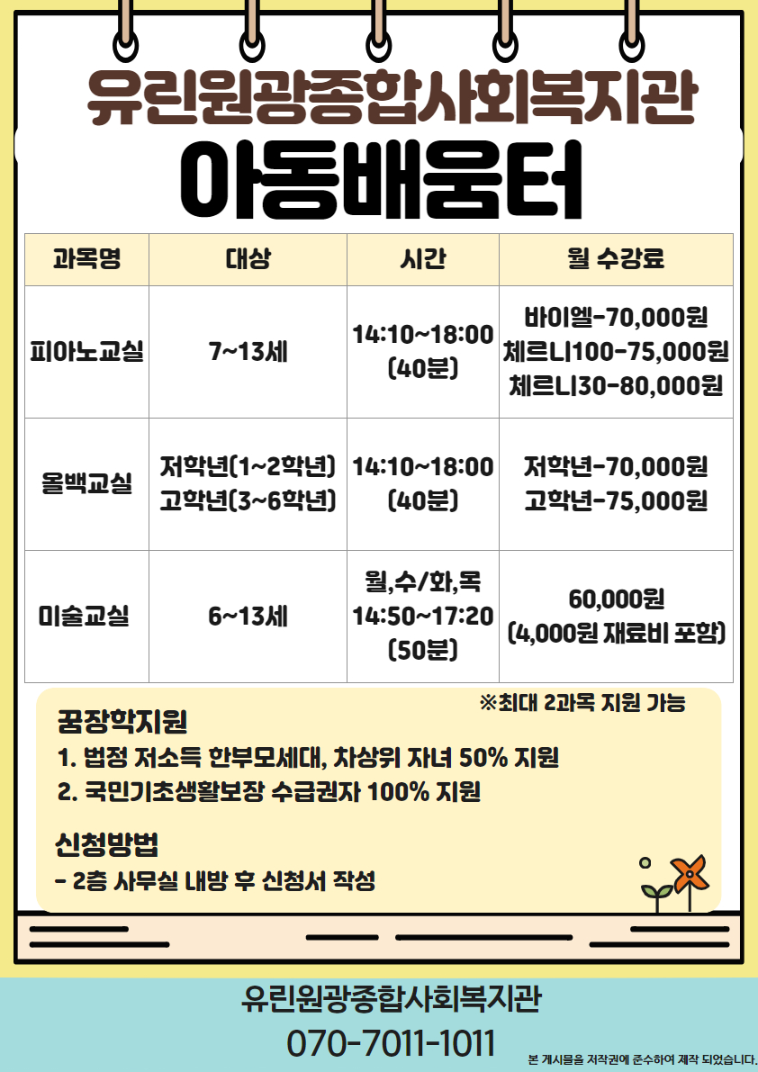유린원광종합사회복지관 느린학습아동지원사업 '나만의 속도로' 참여자 모집