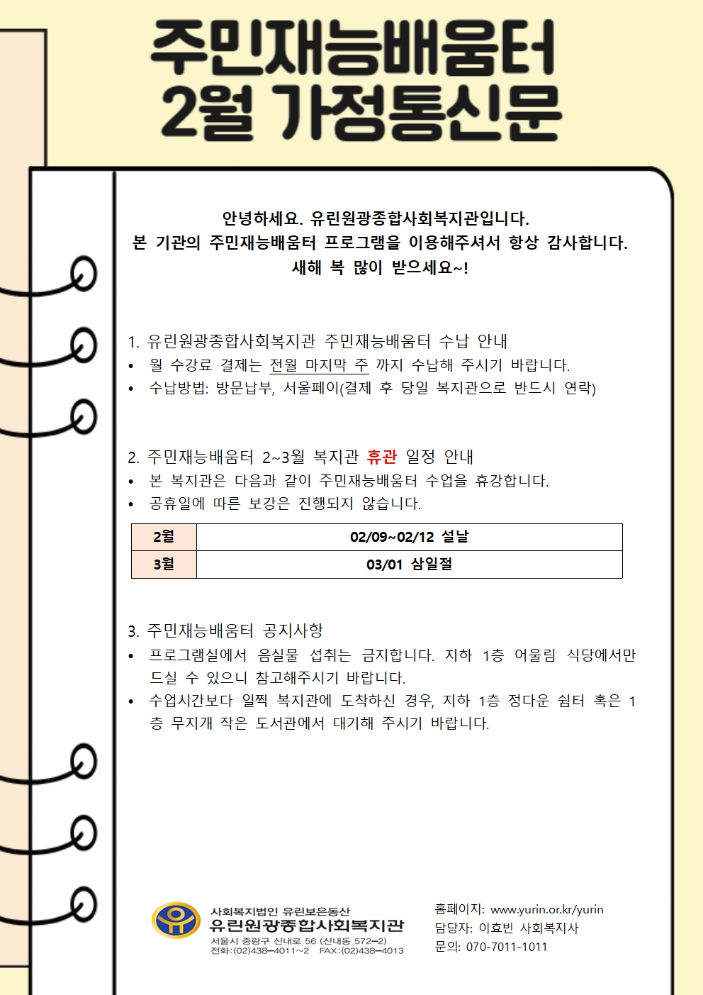 2월 주민재능배움터 가정통신문
