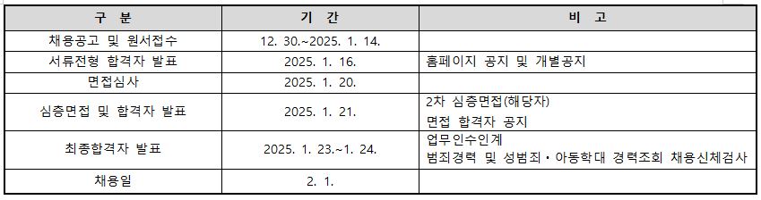 ※ 성범죄 및 아동학대범죄 경력이 있으신 분은 지원하실 수 없고, 입사 전에 성범죄 및 아동학대범죄 경력 조회 동의서를 제출해야 함. 결격사유 해당 시 합격 및 고용 취소
