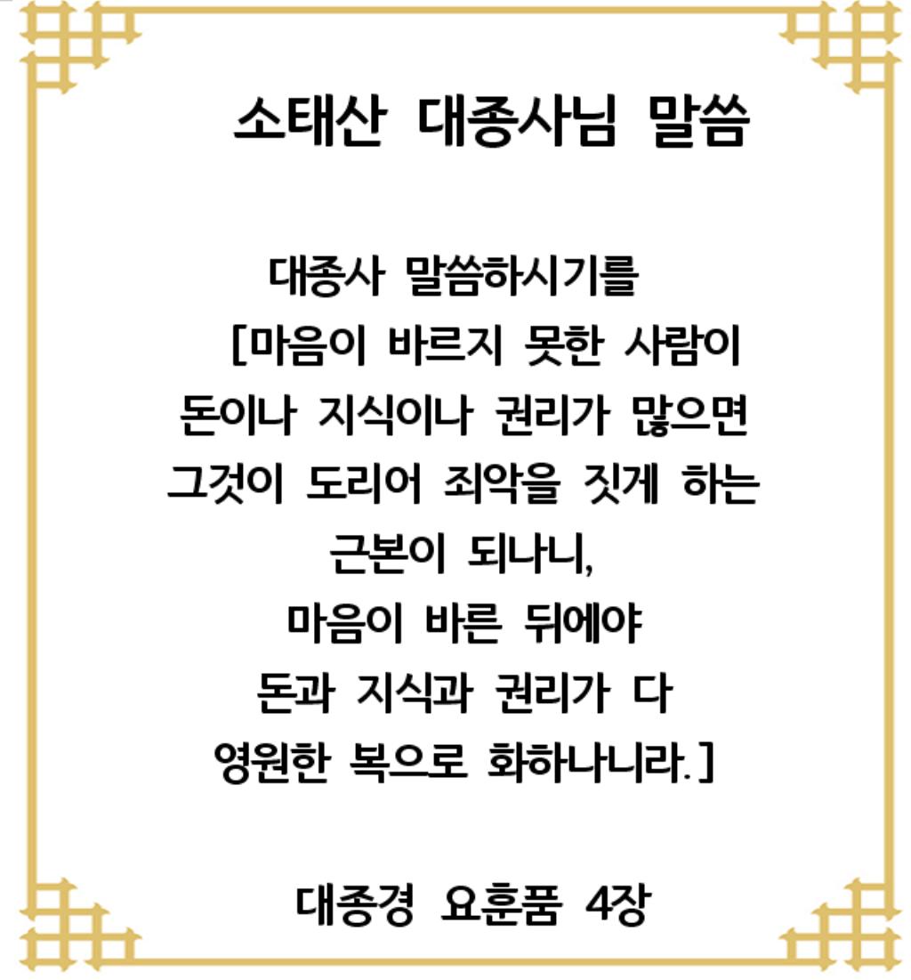 이달의법문 - 소태산 대종사님 말씀