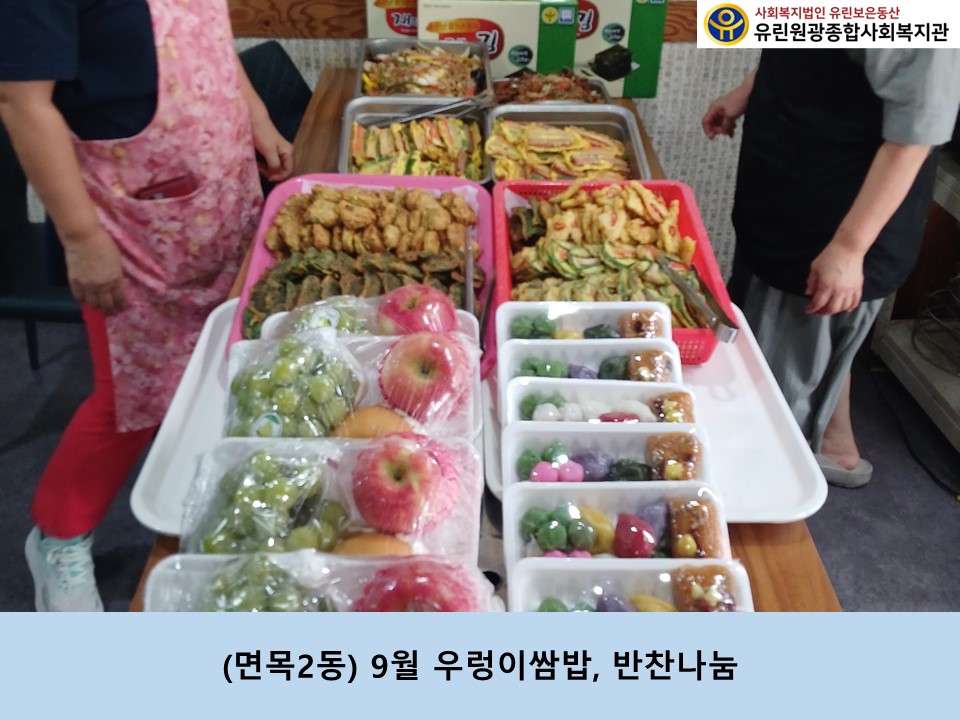 (면목2동)9월 우렁이쌈밥,떡,과일,잡채,반찬나눔