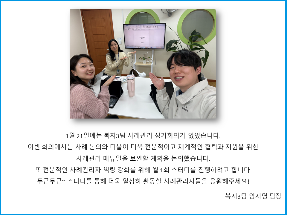 복지3팀 정기 사례관리 회의 - 사례 논의와 매뉴얼 보완, 스터디 계획!