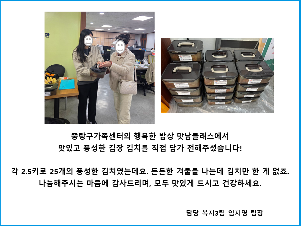 중랑구가족센터 행복한 밥상 사랑의 김장 김치 나눔