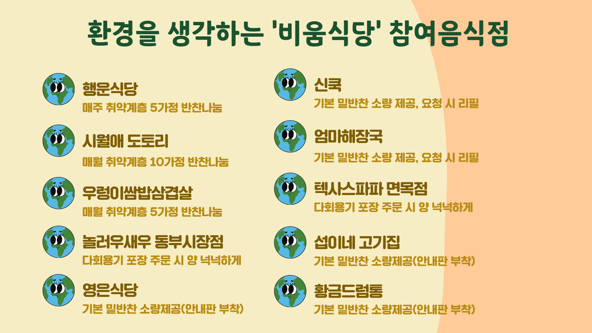 우리동네 환경을 위해 앞장서서 행동하는 '비움식당'입니다! 많은 관심 부탁드립니다~