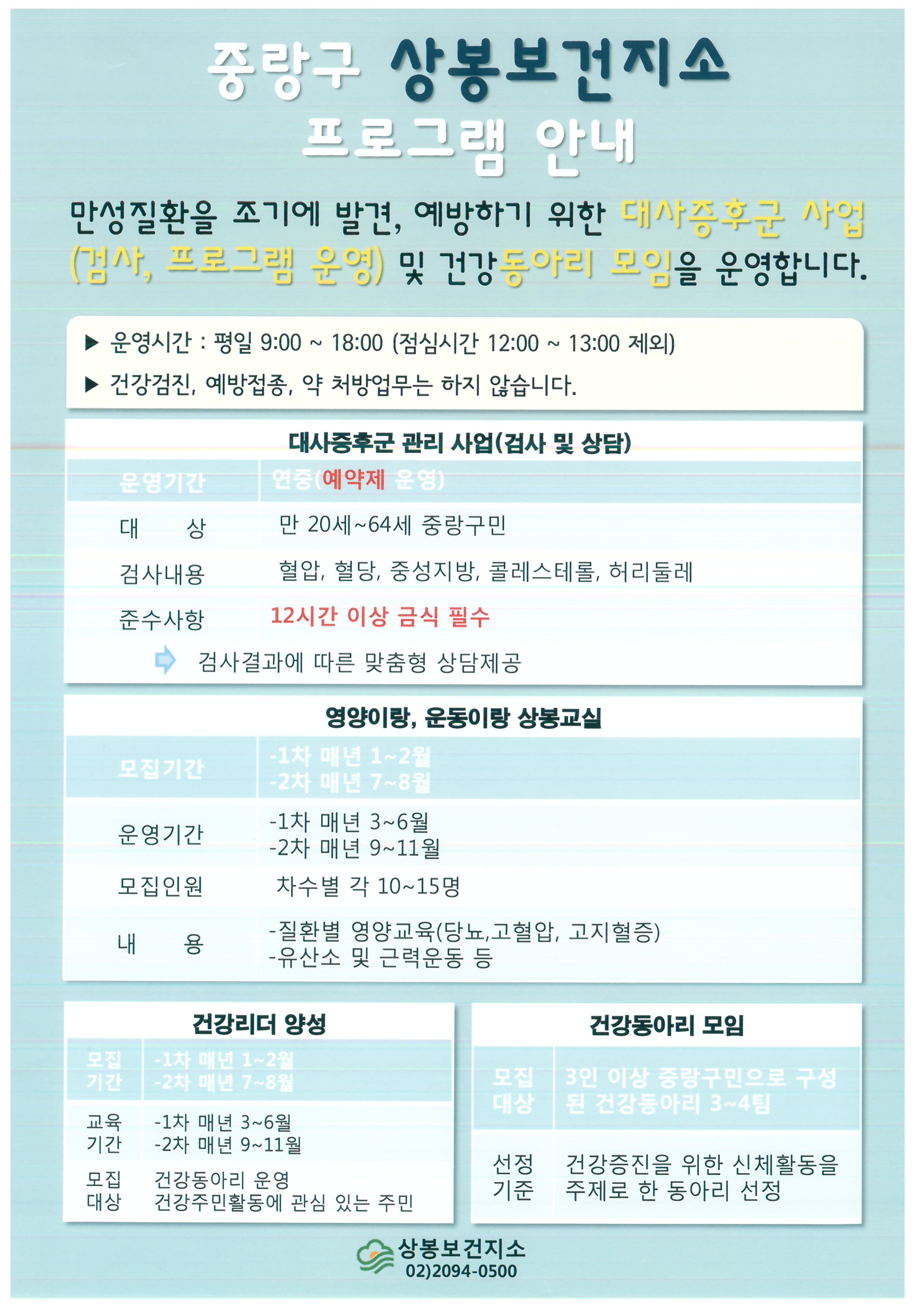 중랑구보건소 만성질환 관리 및 건강증진
