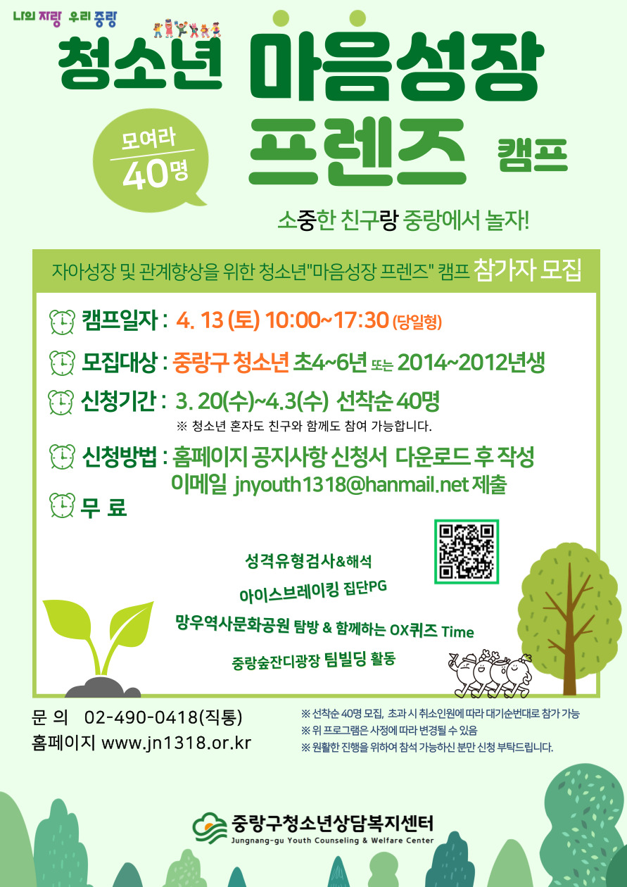 [중랑구청소년상담복지센터] 청소년 마음성장 프렌즈 캠프