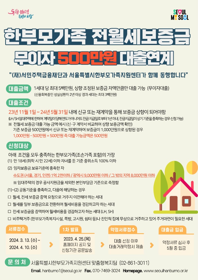 [서울특별시 한부모가족지원센터] 한부모 가족 전월세 보증금 지원 제도