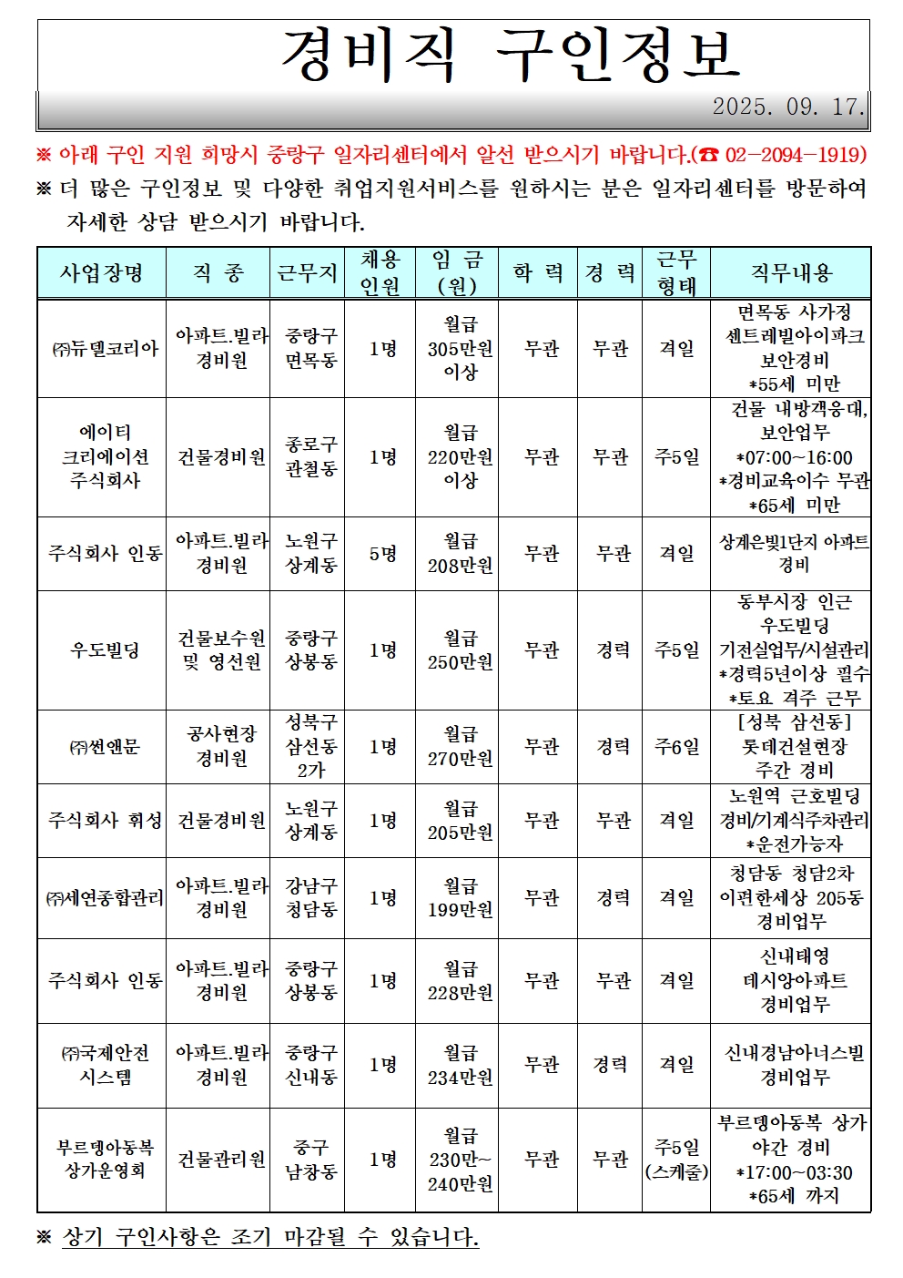 [중랑구청] 7월 다섯째 주 일자리 정보