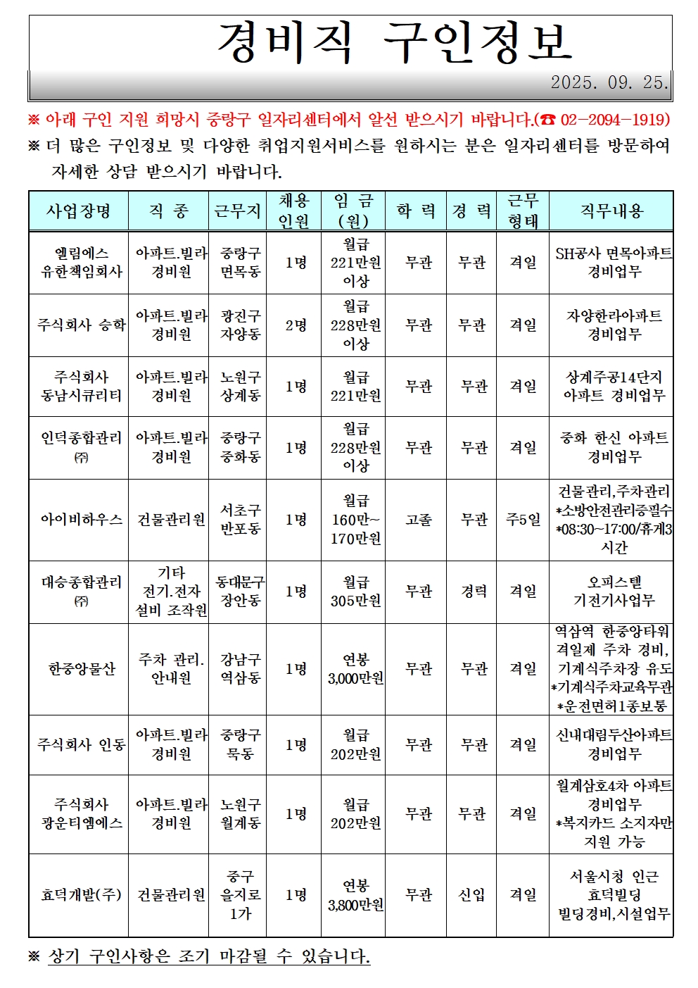 [중랑구청] 7월 다섯째 주 일자리 정보