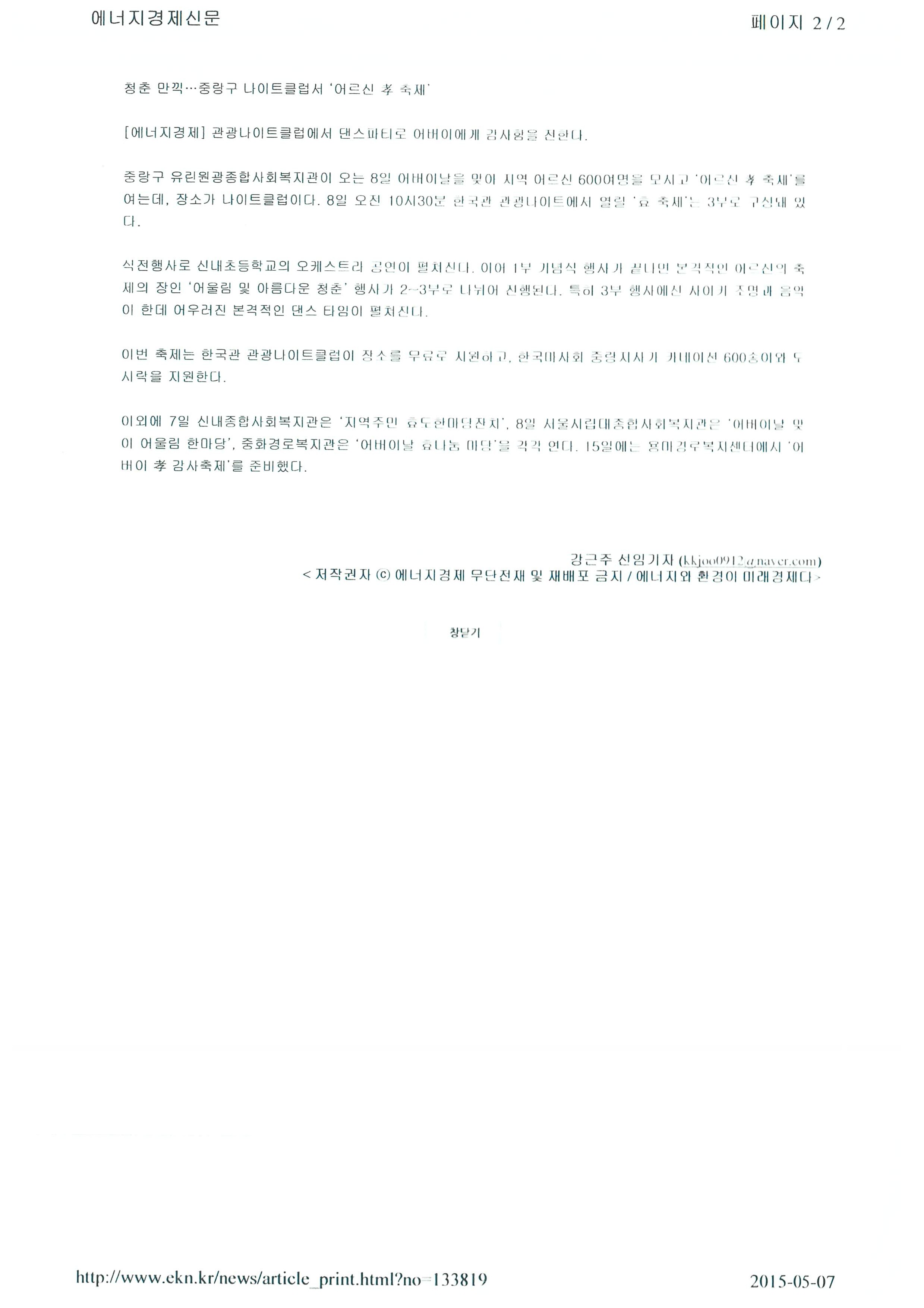 2015.05.05 청춘 만끽 … 중랑구 나이트클럽서 ‘어르신’ 孝축제' 에너지경제 외 20건