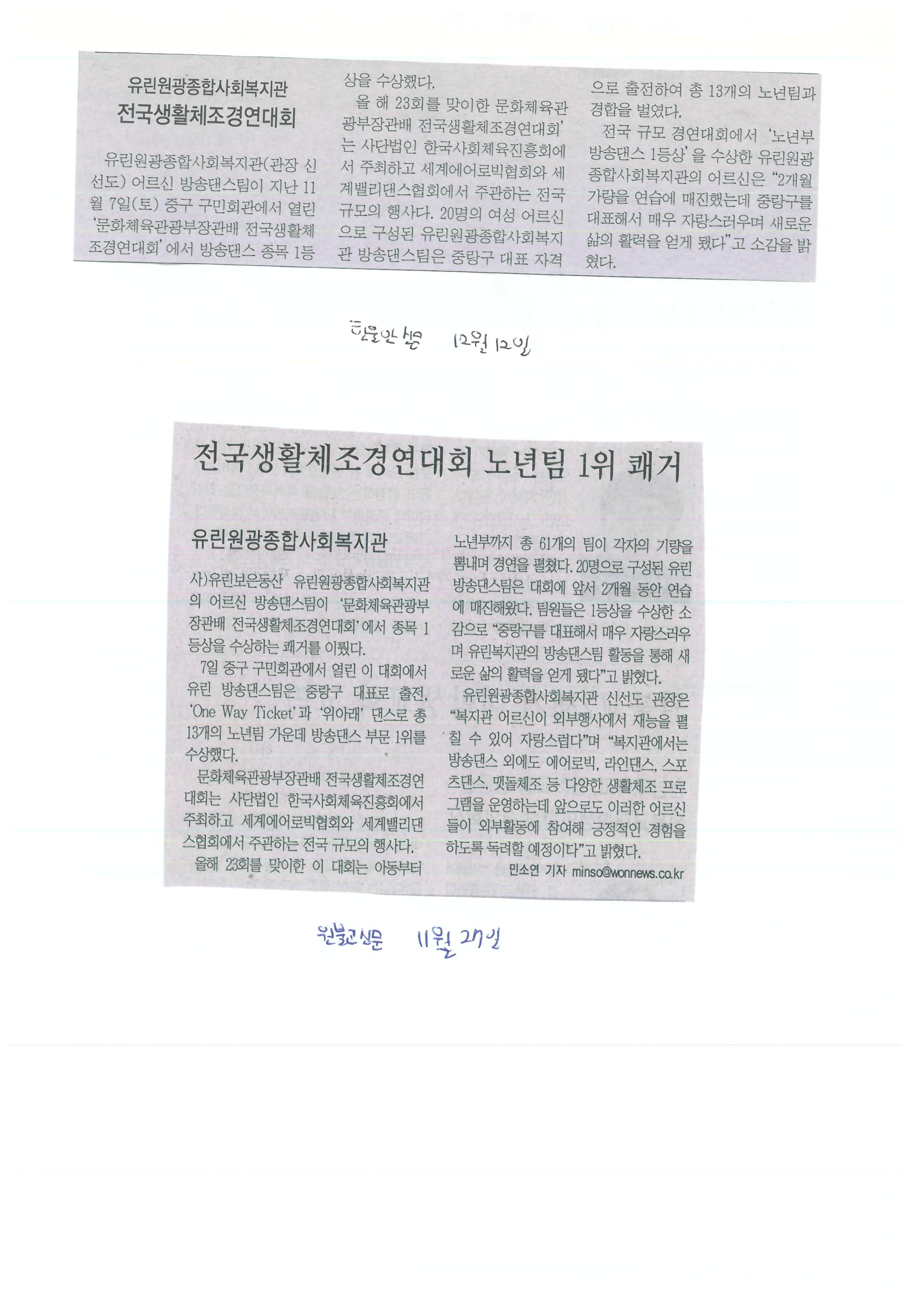 2016.12.24 춤으로 젊어져요!’ 유린원광종합사회복지관 어르신 방송댄스팀 우수상 한울안신문
