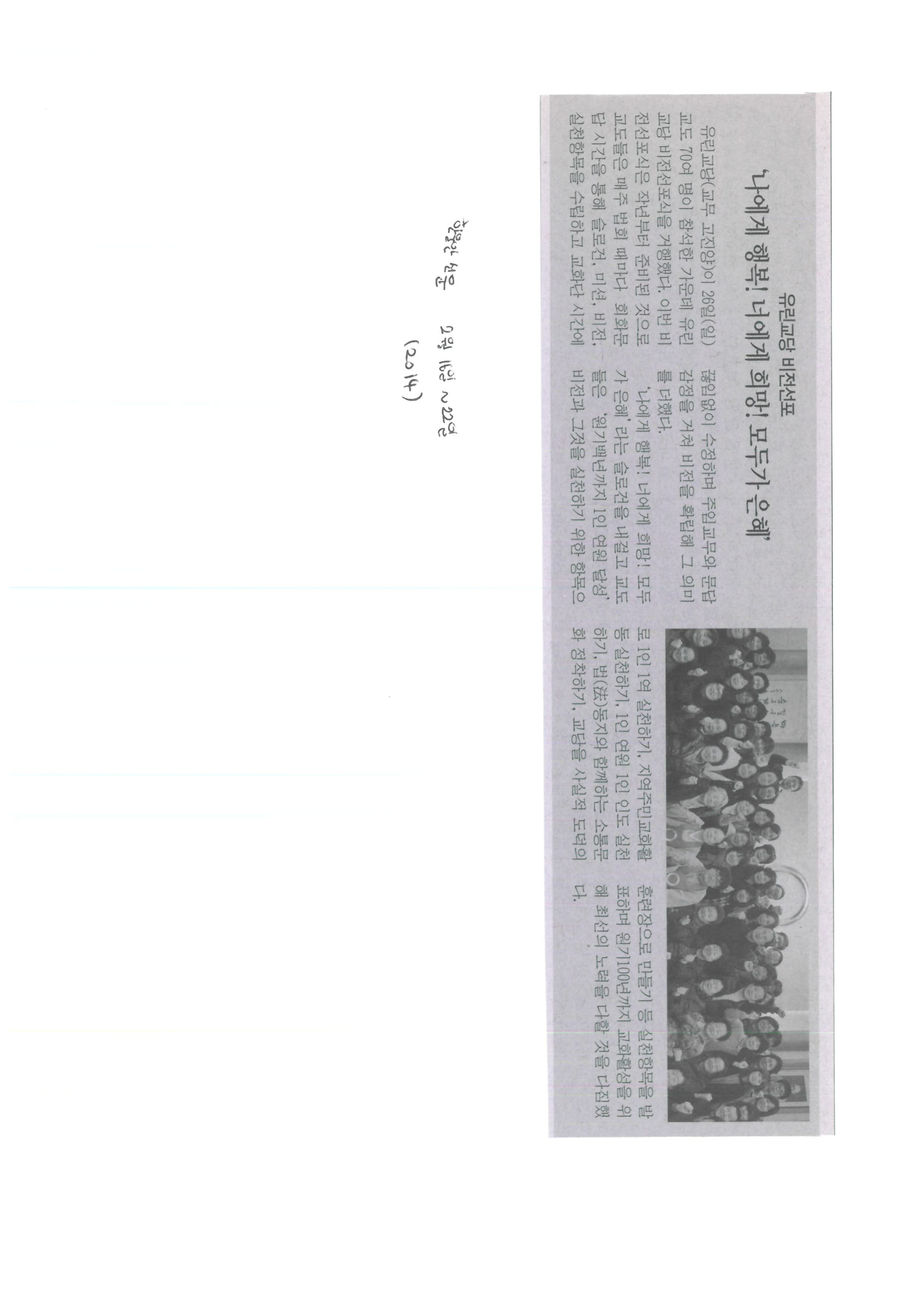 2014.02.16 '나에게 행복! 너에게 희망! 모두가 은혜', 한울안 신문