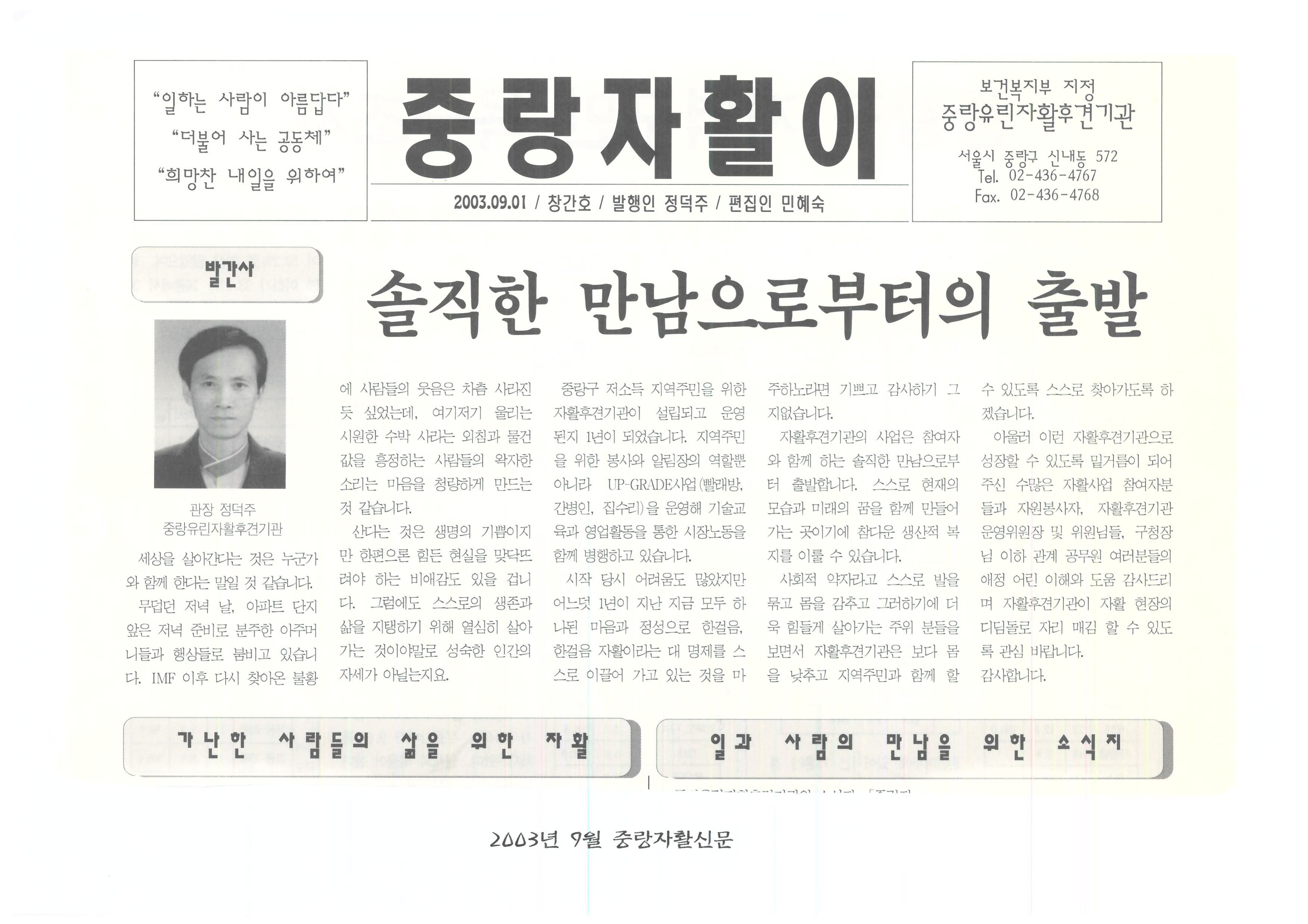 2003.09.01 솔직한 만남으로부터의 출발, 중랑자활이