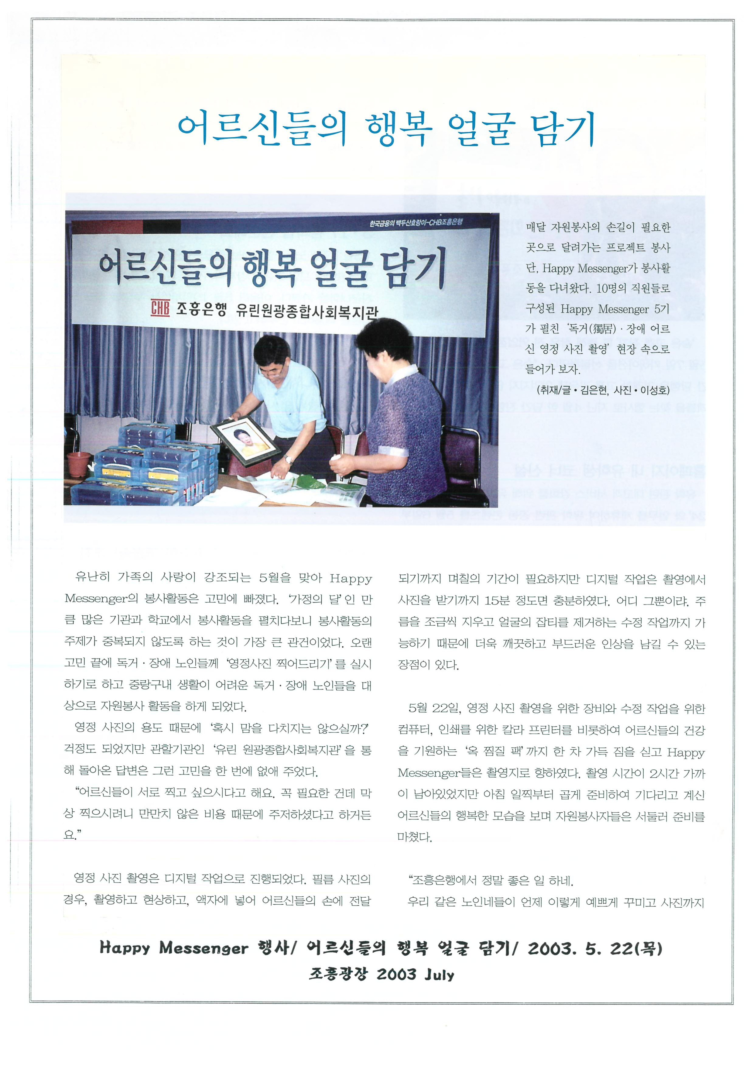 2003.05.22 해피메신저행사어르신들의행복얼굴담기, 조흥광장 2003년6월호