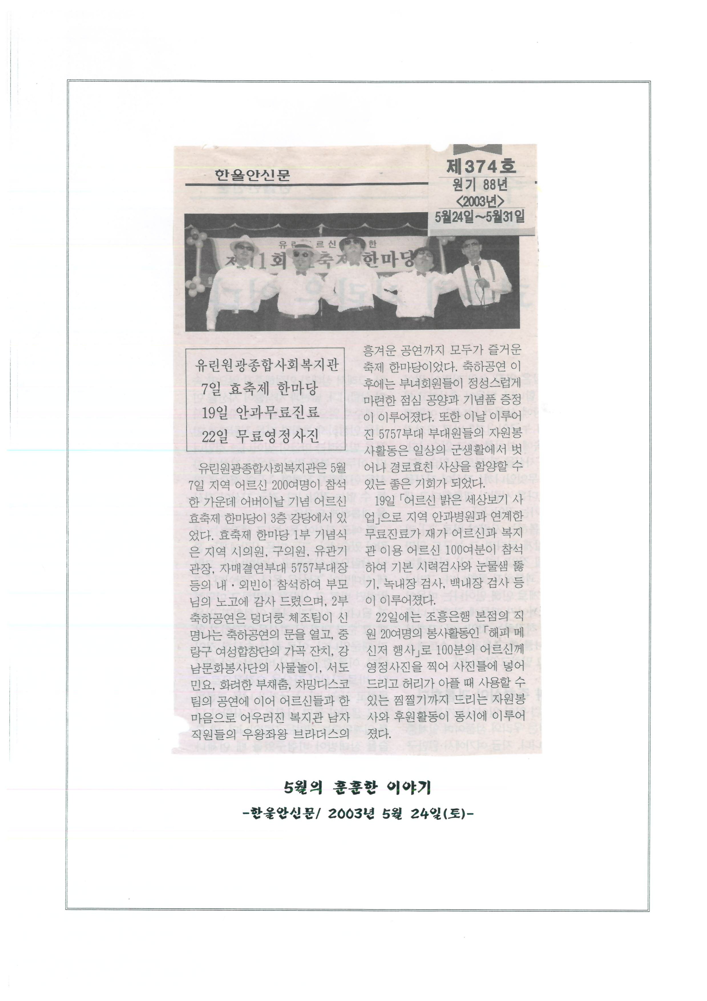 2003.05.24 5월의훈훈한이야기, 한울안신문