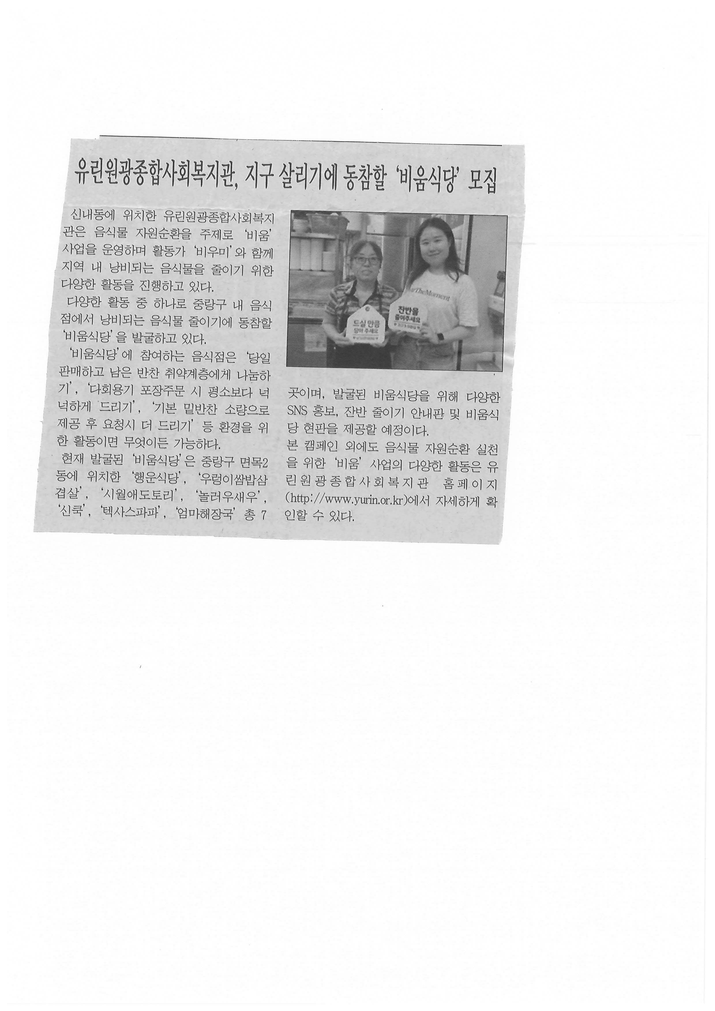2024.09. 유린원광종합사회복지관, 지구 살리기에 동참할 '비움식당' 모집