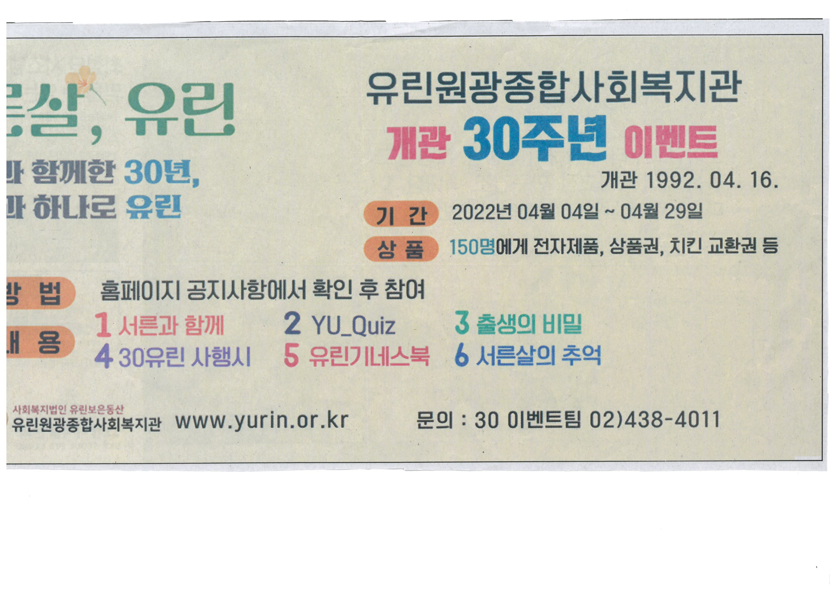 2022. 유린원광종합사회복지관 개관 30주년 이벤트(서른살, 유린) 외 3건