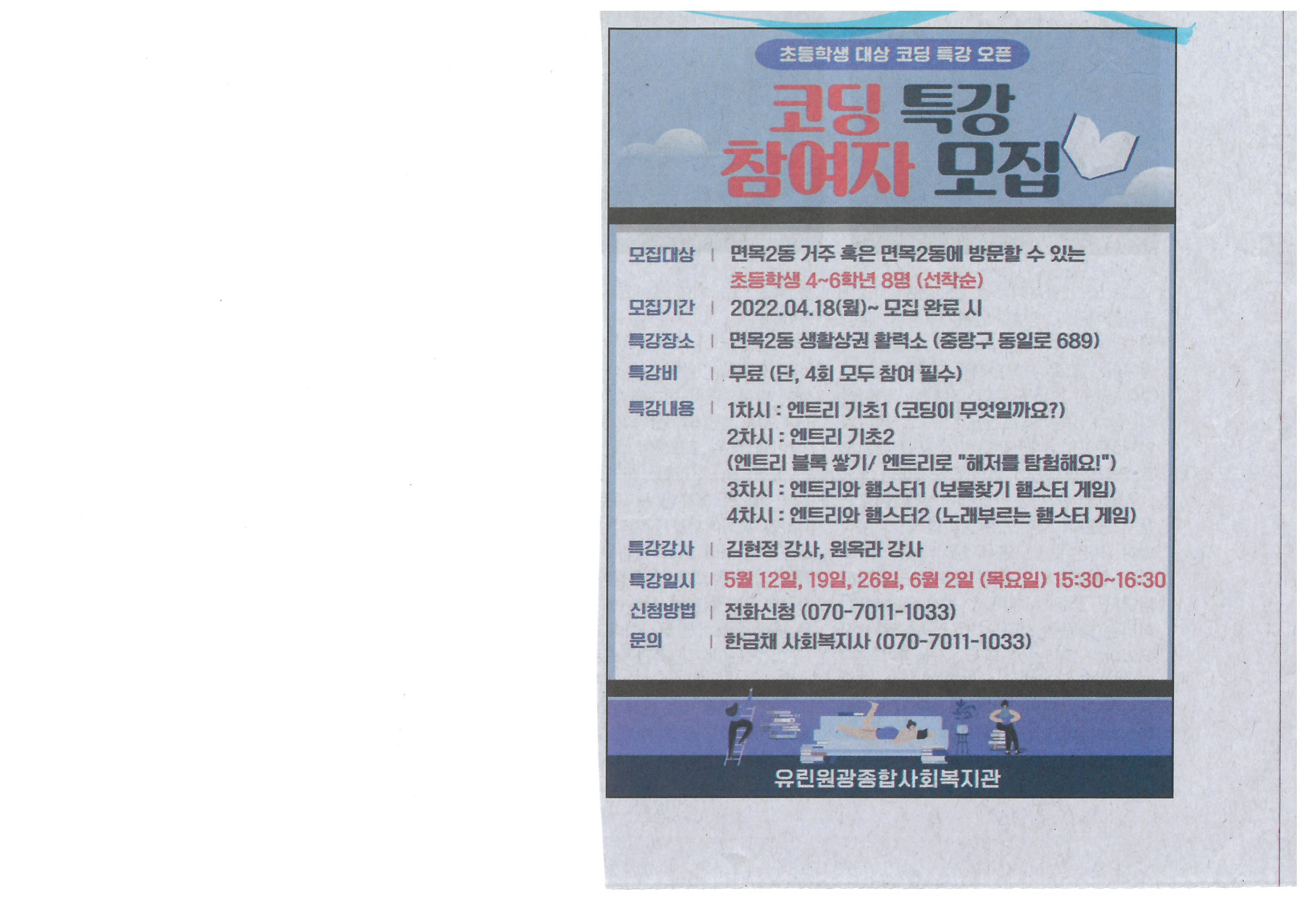 2022.04. 코딩 특강 참여자 모집