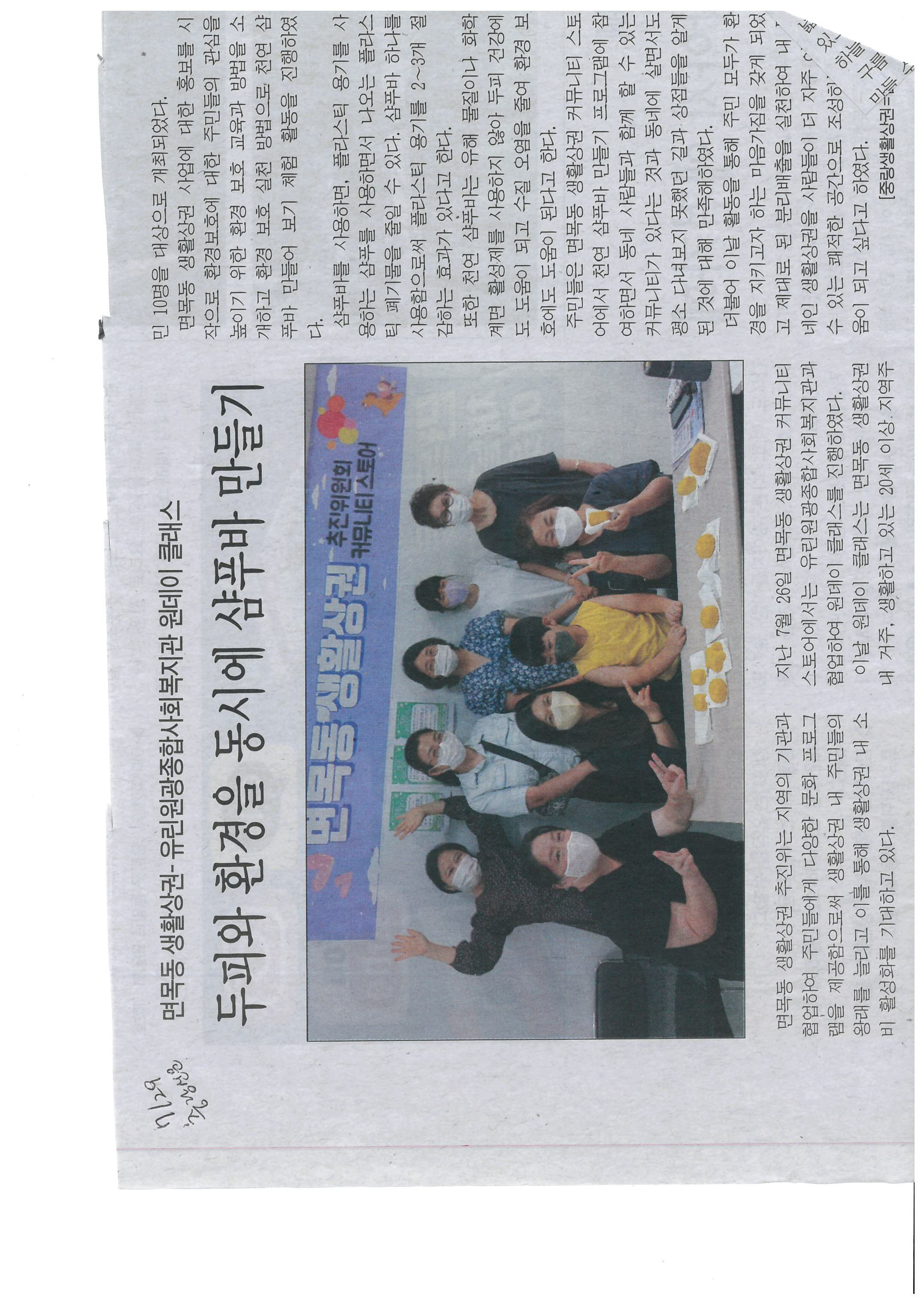 2022.07.29 두피와 환경을 동시에 샴푸바 만들기, 중랑신문