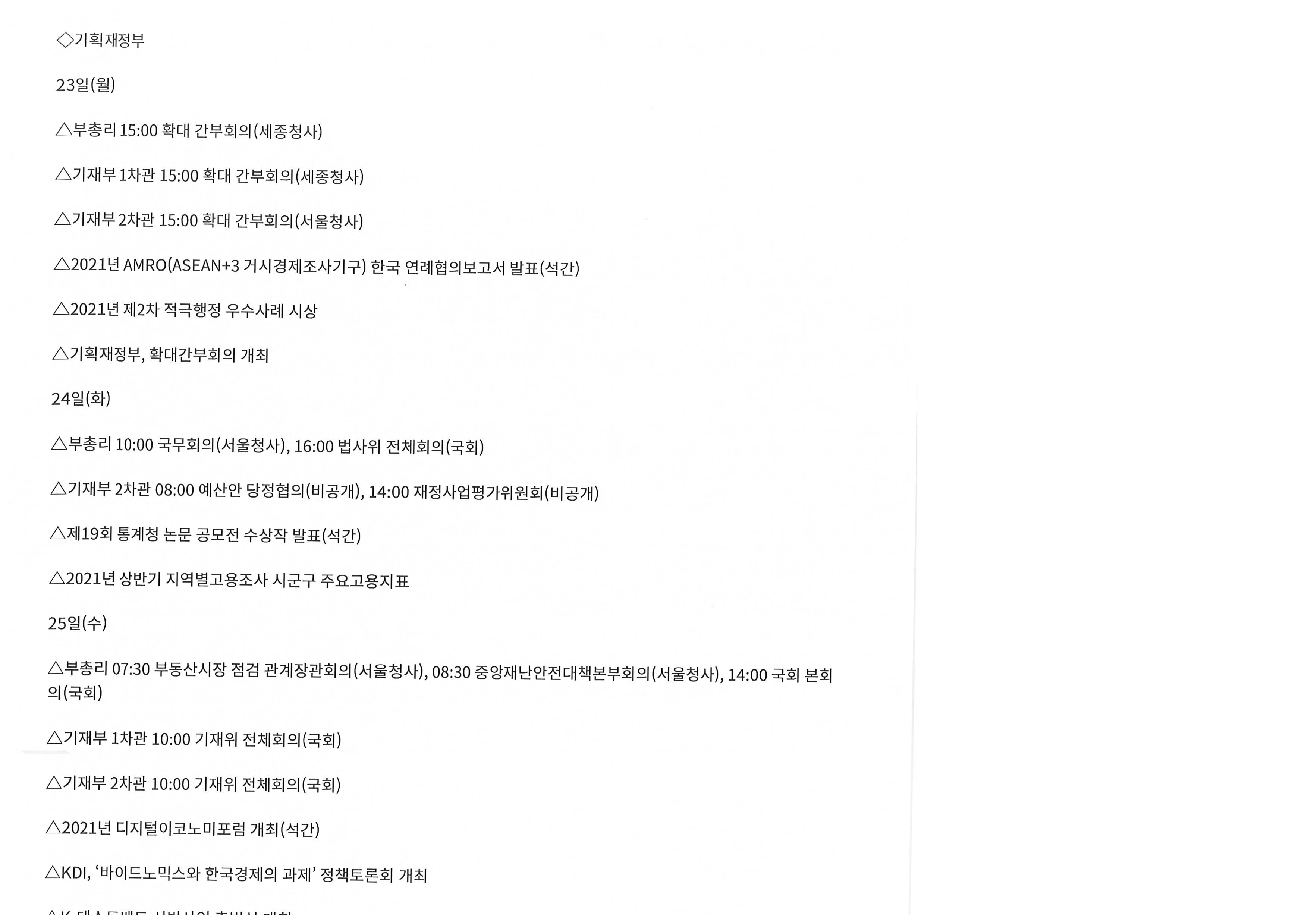 기획재정부보건복지부 일정표