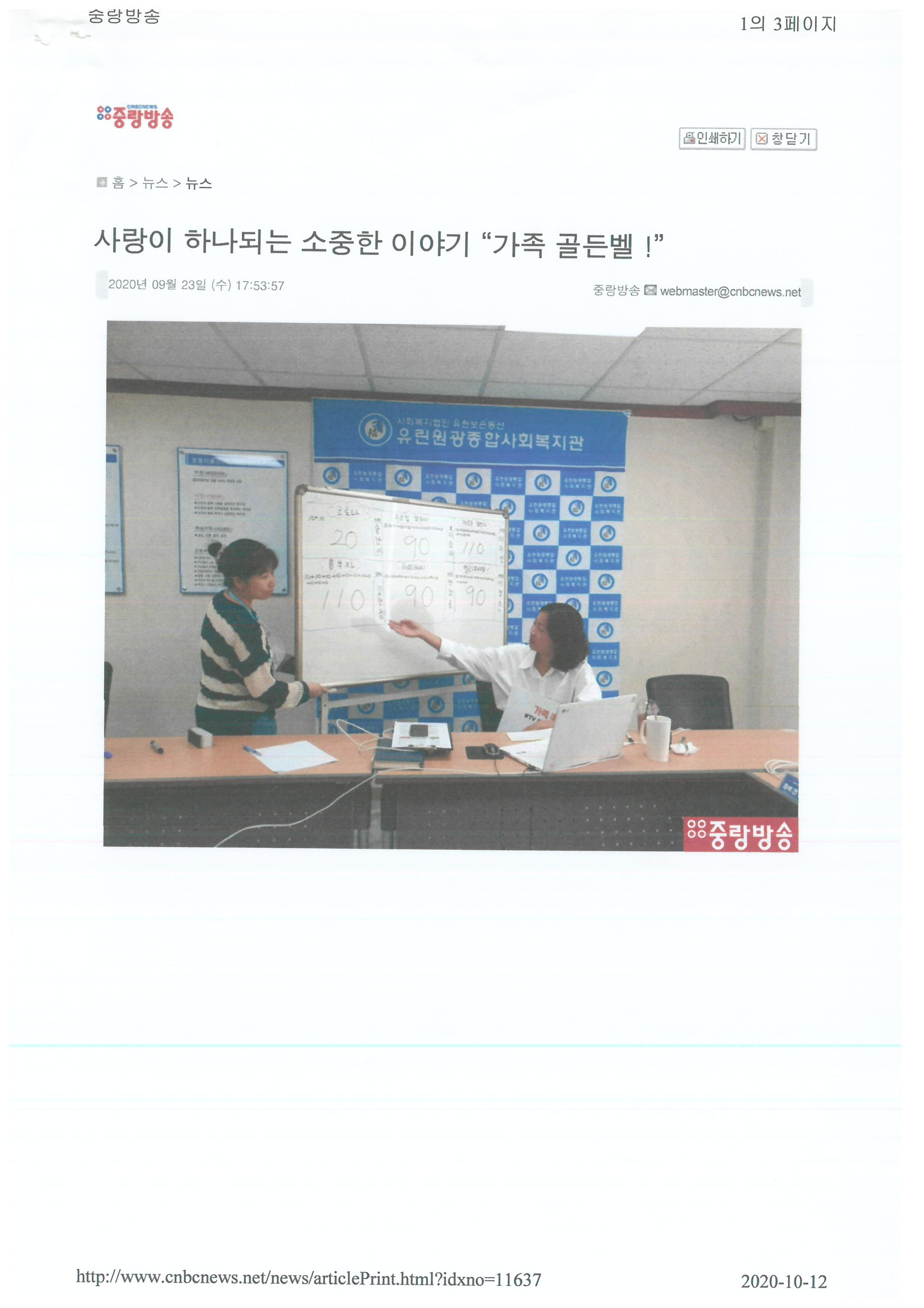 2020.09.23 사랑이 하나되는 소중한 이야기 가족 골든벨 !, 중랑방송