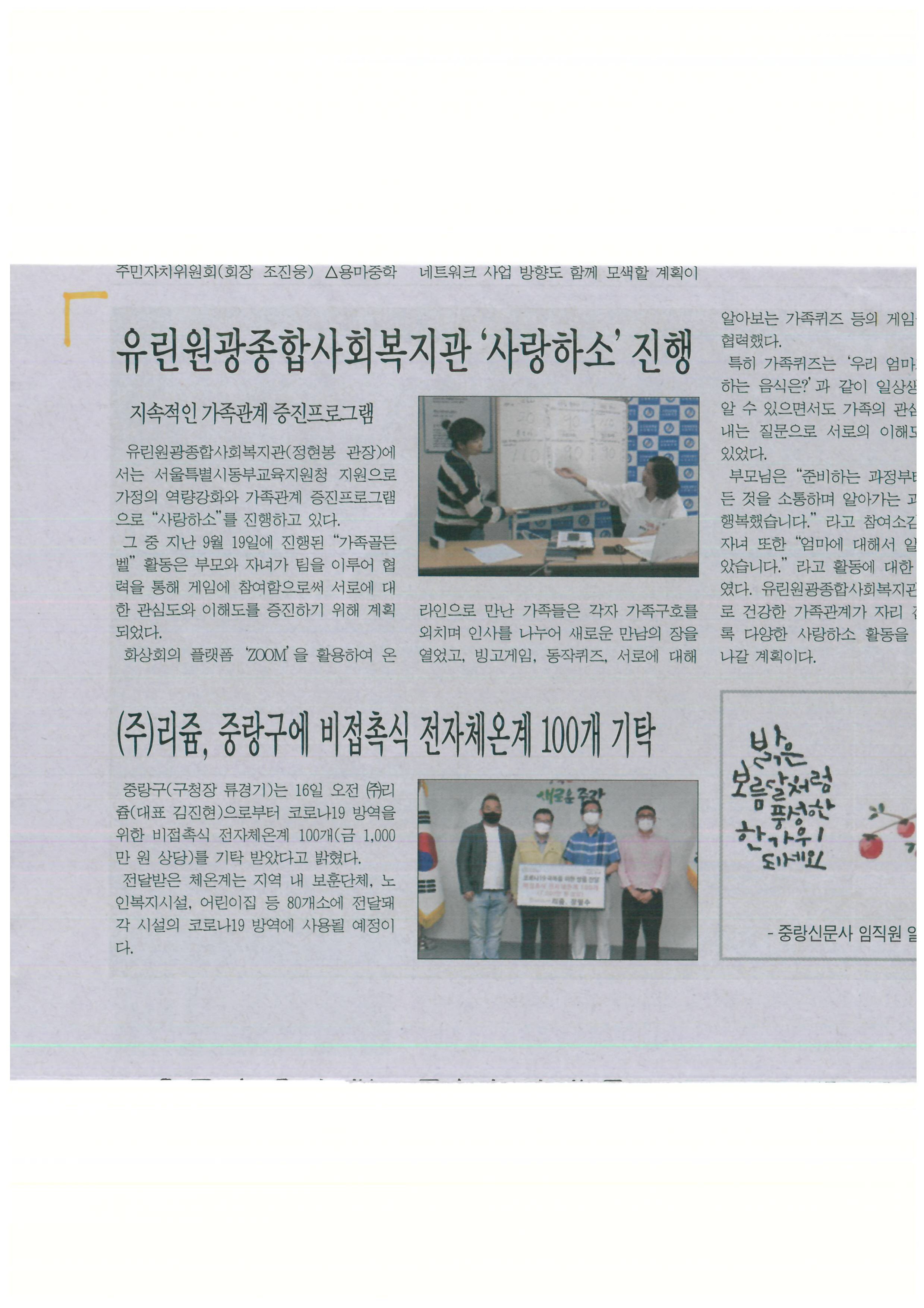 2020.09.28 유린원광종합사회복지관 '사랑하소' 진행, 중랑신문