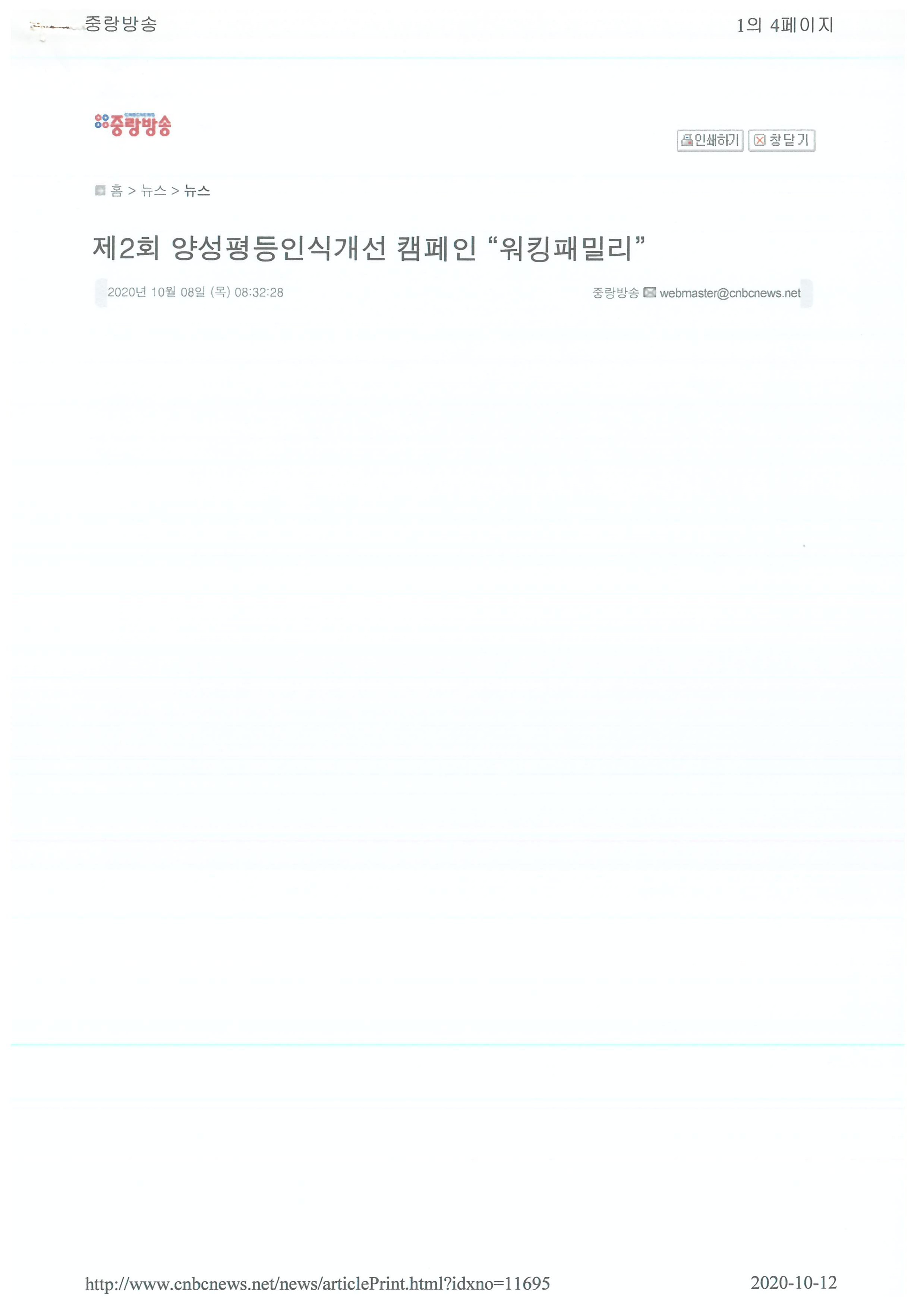 2020.10.08 제2회 양성평등인식개선 캠페인 워킹패밀리, 중랑방송