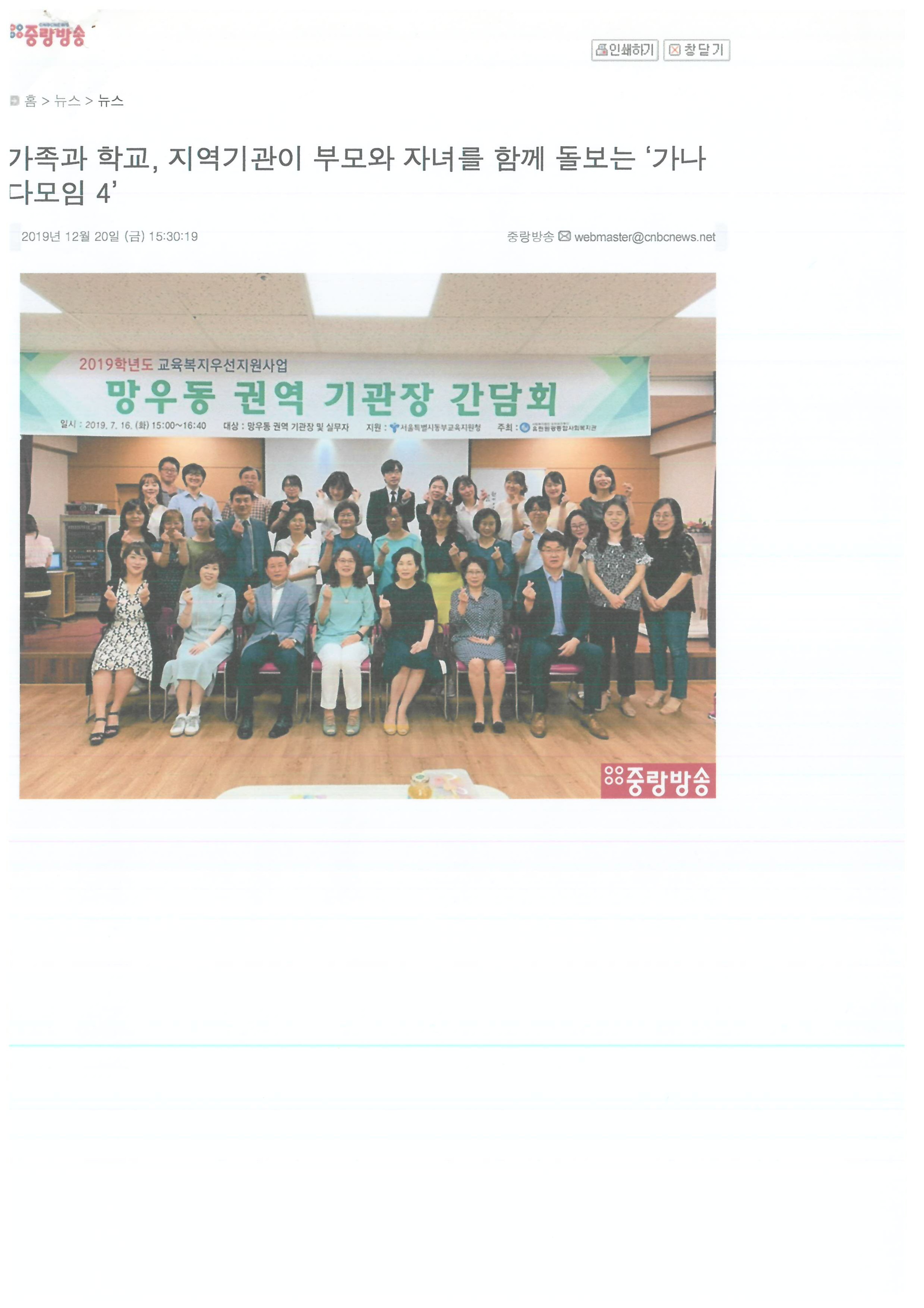 2019.12.20 가족과 학교, 지역기관이 부모와 자녀를 함께 돌보는 '가나다모임 4', 중랑방송