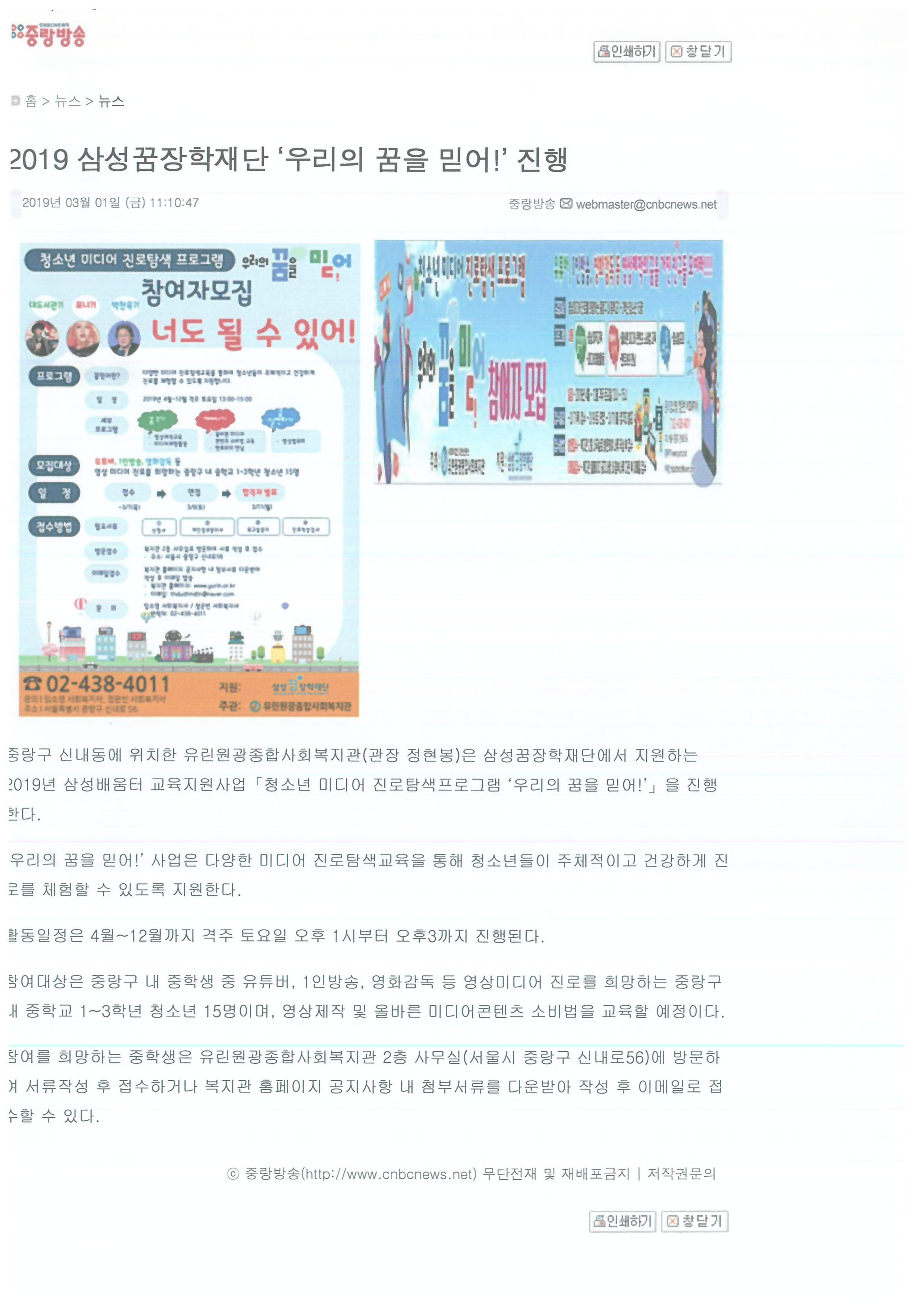 2019.03.01 2019 삼성꿈장학재단 '우리의 꿈을 믿어!' 진행, 중랑방송