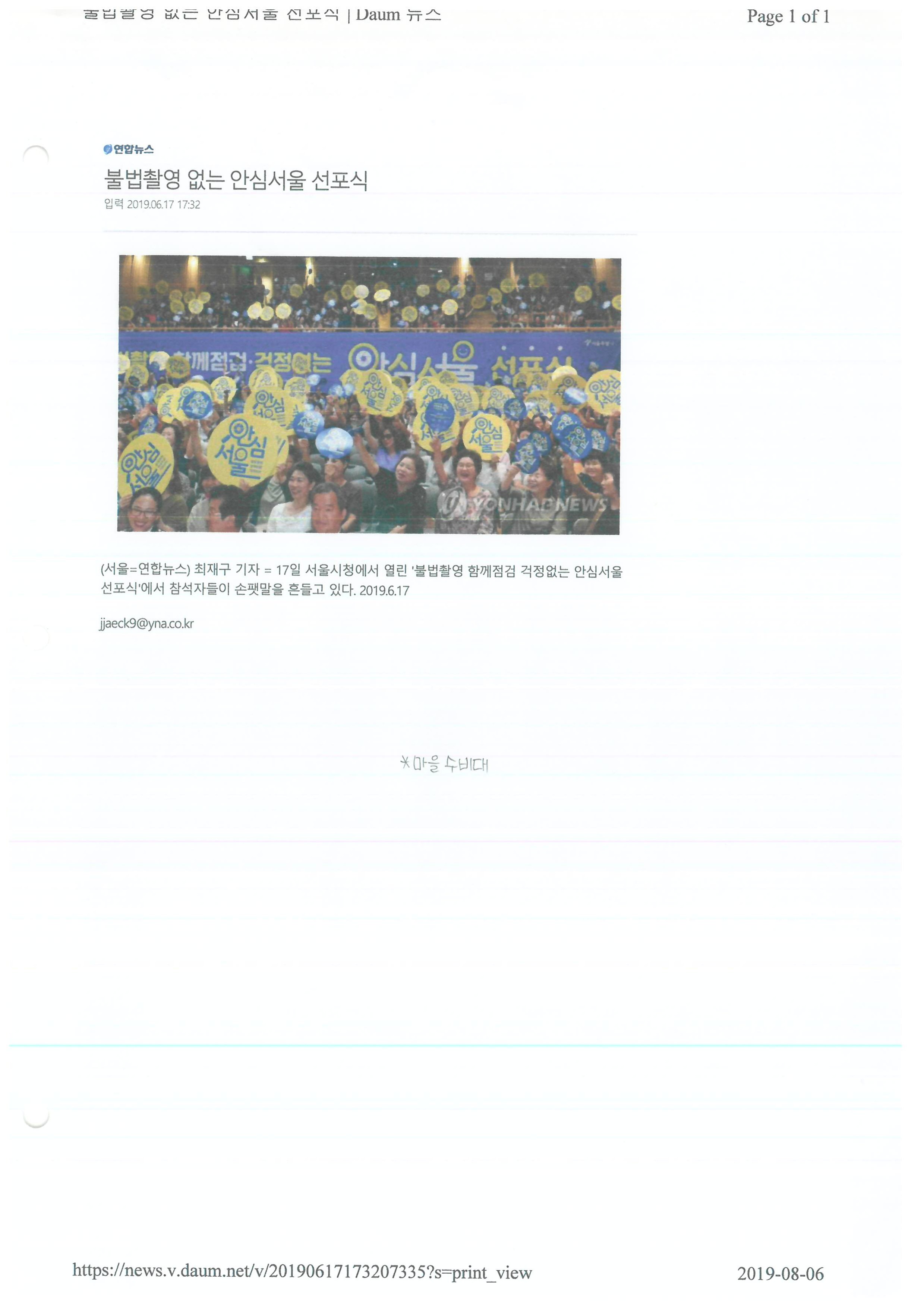 2019.06.17 불법촬영 없는 안심서울 선포식, 연합뉴스
