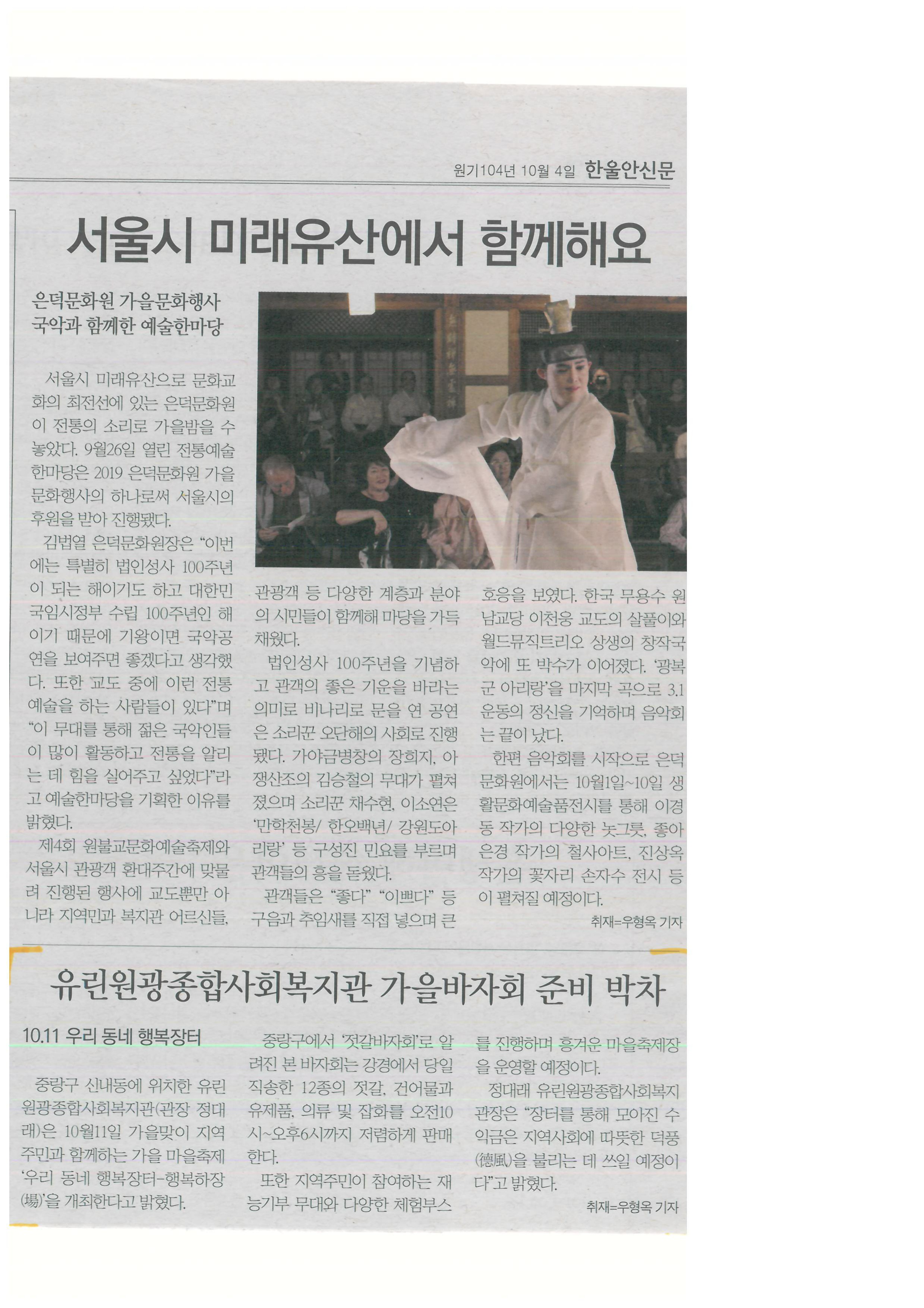 2019.10.04 유린원광종합사회복지관 가을바자회 준비 박차, 한울안신문