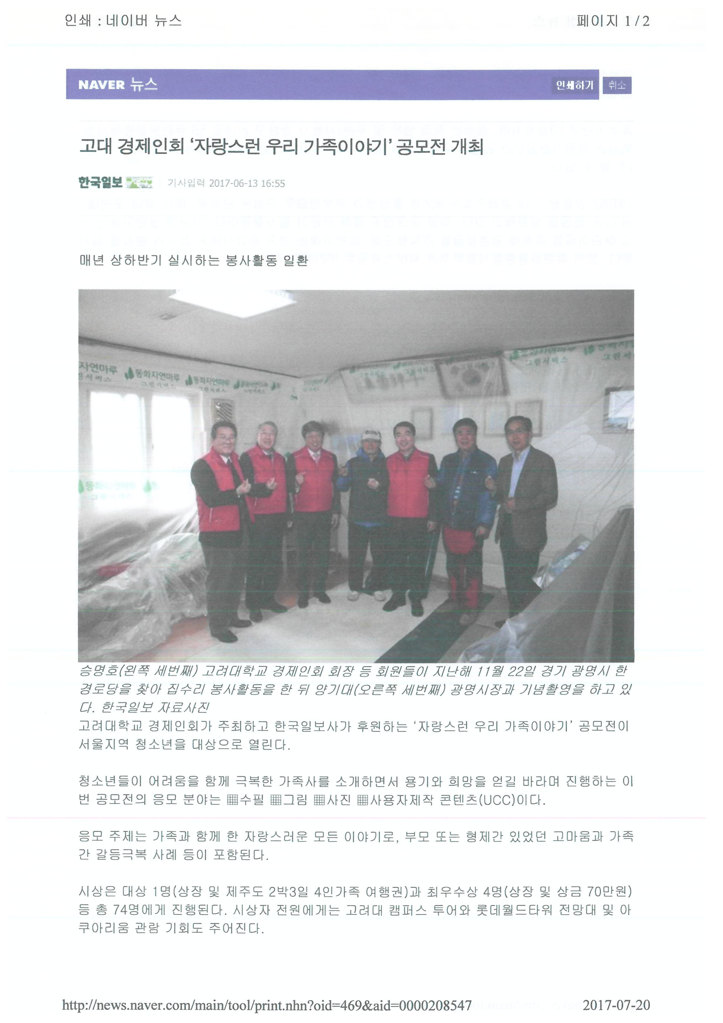 2017.06.13 고대 경제인회 '자랑스런 우리 가족이야기' 공모전 개최 네이버뉴스_한국일보