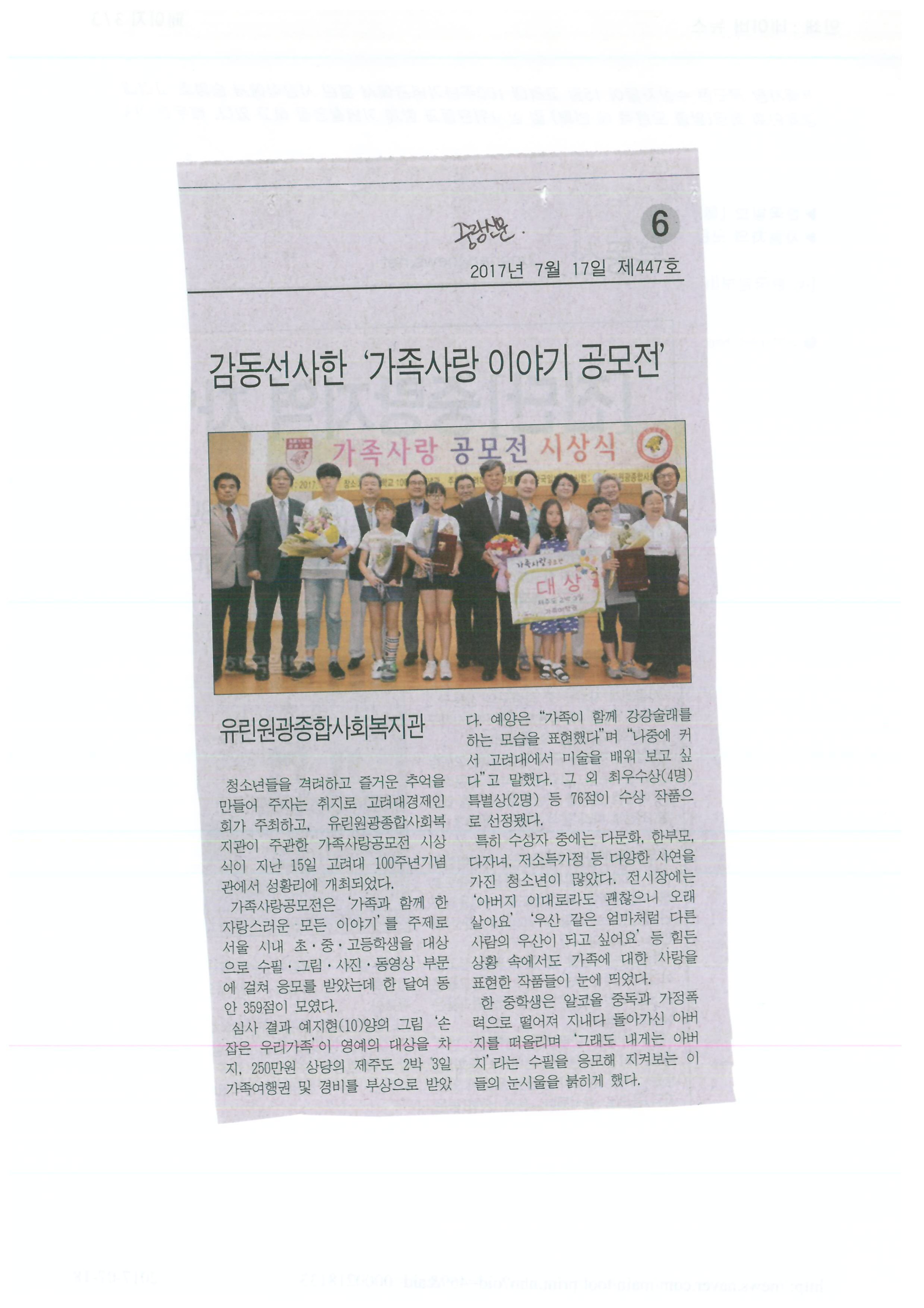 2017.07.17 감동 선사한 '가족사랑 이야기 공모전' 중랑신문