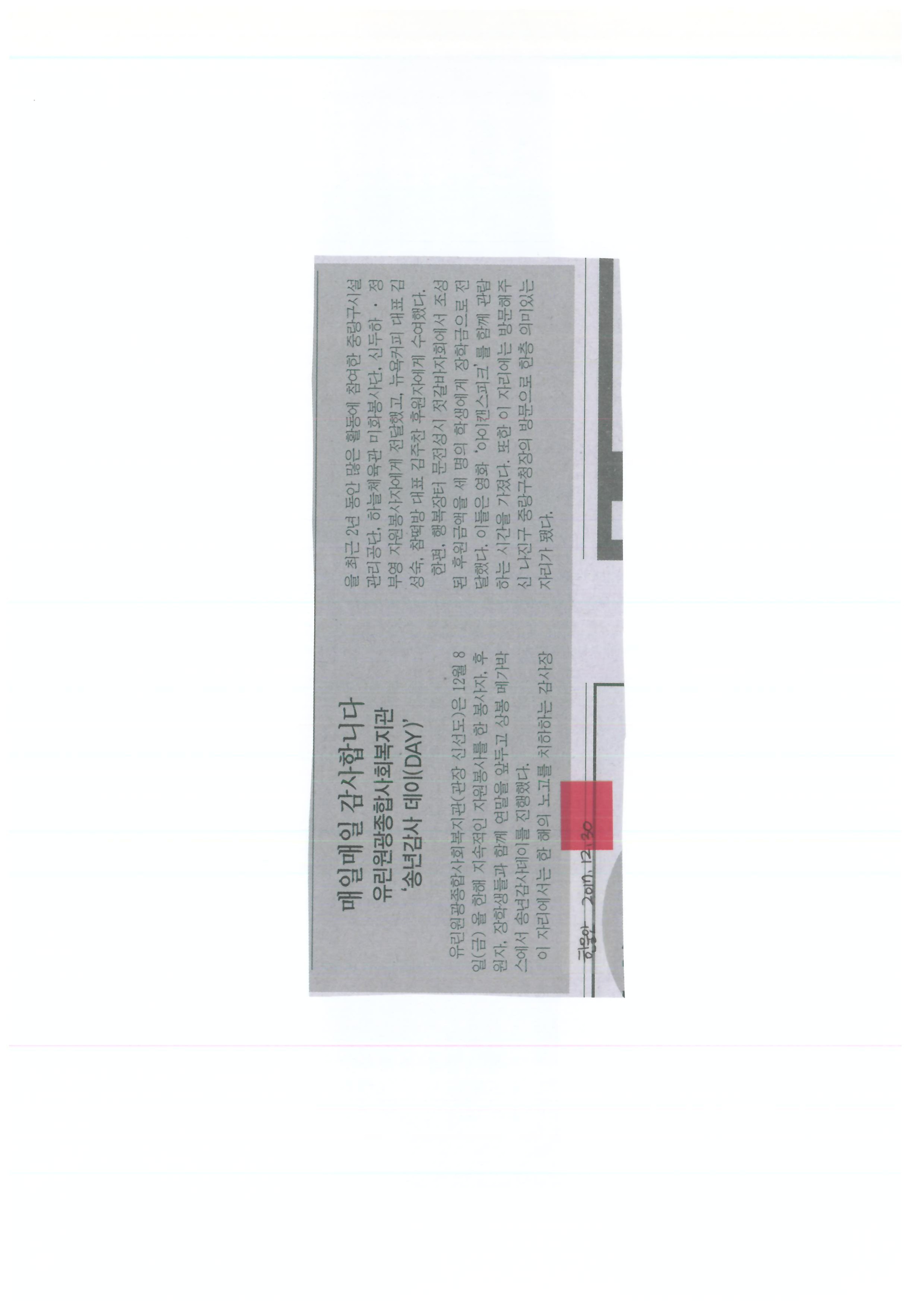 2017.12.30 매일매일 감사합니다 ‘송년 감사 데이(DAY)’ 한울안신문