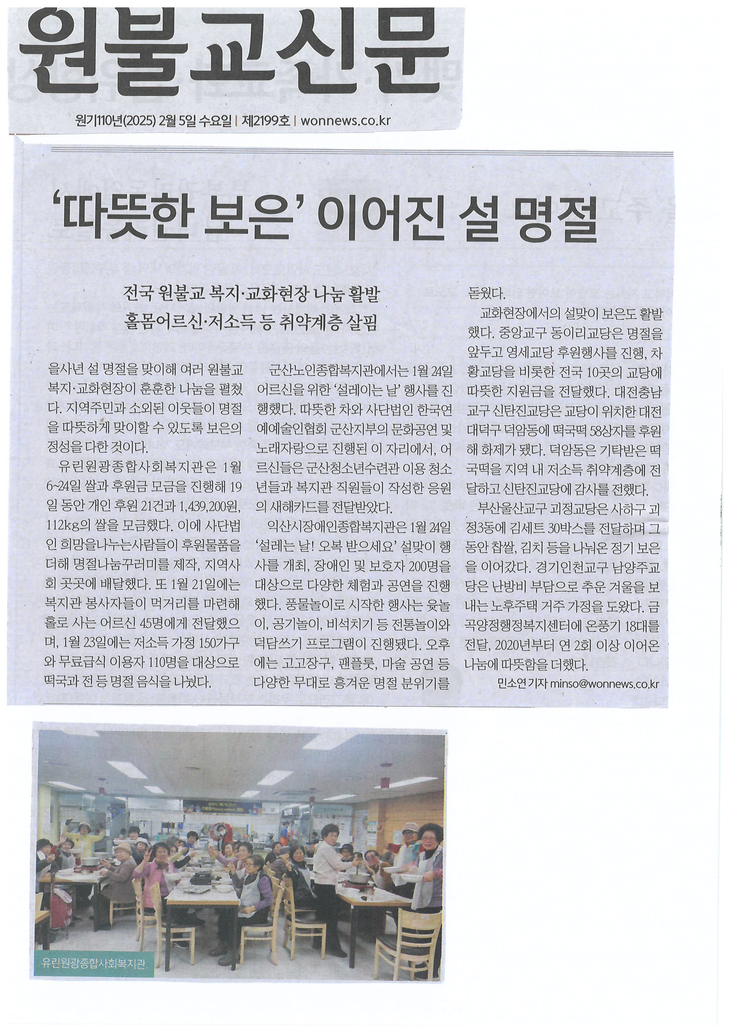 2025.02.05 '따뜻한 보은' 이어진 설 명절, 원불교 신문