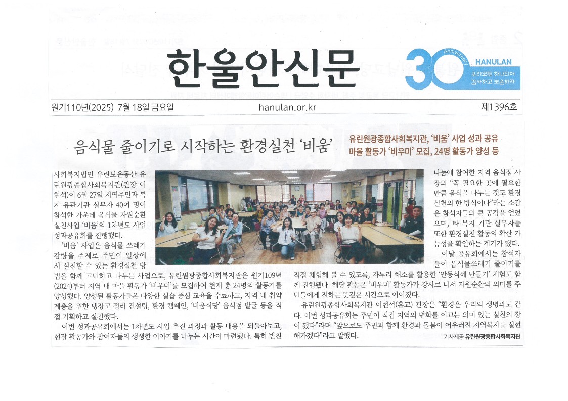 2025.7.18 비움 사업 성과공유회 진행, 한울안신문